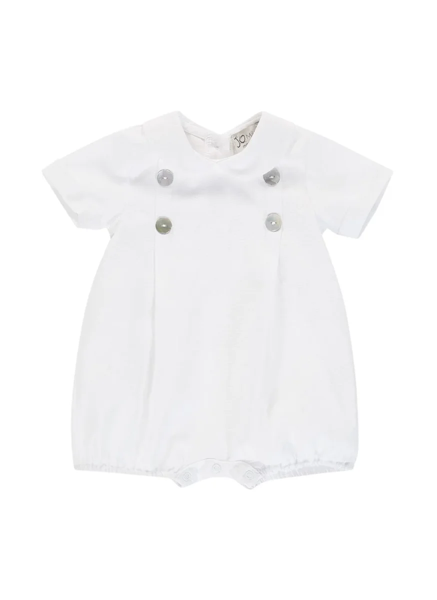 Realizzato in morbido lino, il pagliaccetto per neonato 571A3-1 è perfetto per le giornate estive. Leggero e fresco, questo pagliaccetto garantisce comfort e libertà di movimento al tuo piccolo. Con un design classico e versatile, è l’ideale per ogni occasione.