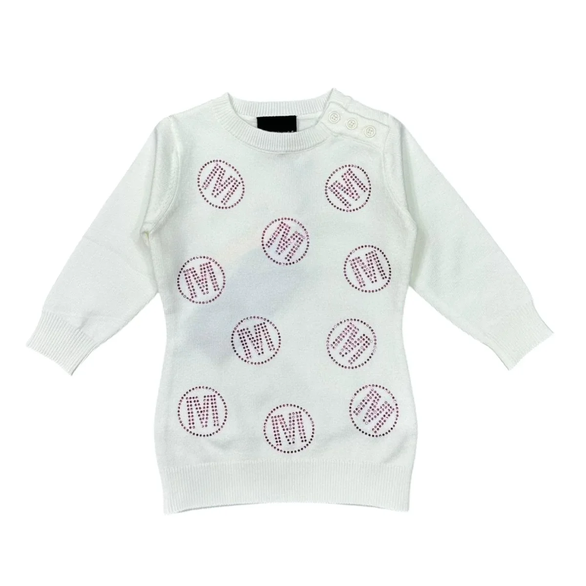 Abito per neonata firmato Marc Ellis, decorato con applicazioni della lettera โMโ, simbolo distintivo del brand. Realizzato in tessuto morbido e delicato, รจ pensato per offrire comfort e stile sin dai primi mesi. Un capo raffinato e riconoscibile, ideale per creare look eleganti ma pratici.