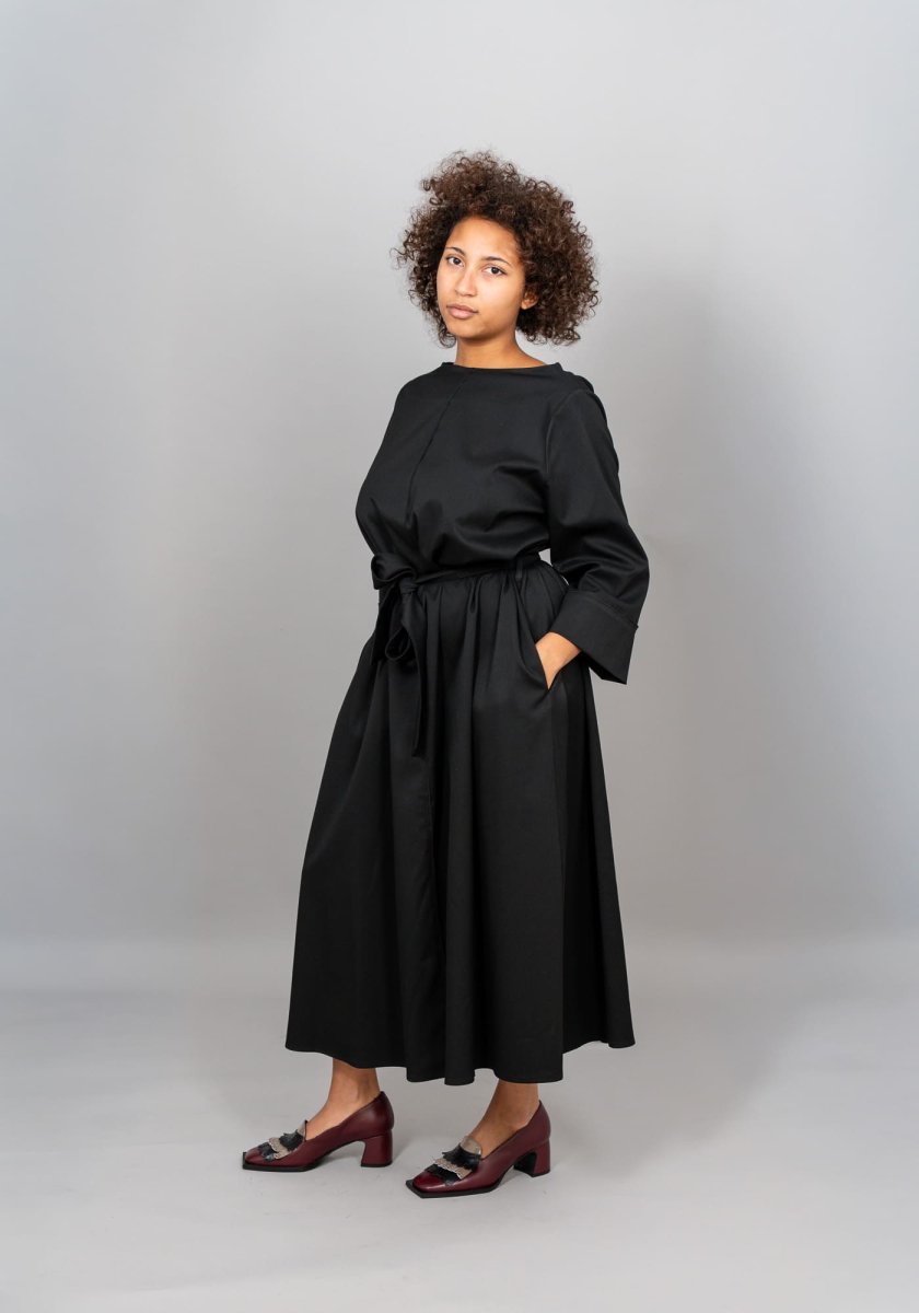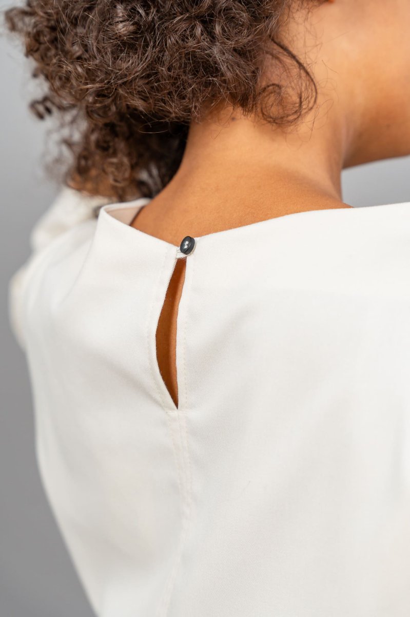 La linea morbida e leggermente balloon accarezza la gamba con naturalezza, mentre la chiusura con bottoncino alla caviglia aggiunge un dettaglio raffinato che ne definisce il carattere. Le cuciture e le rifiniture rivelano l’attenzione artigianale che contraddistingue ogni creazione Dettagli di Capogiro, offrendo una vestibilità equilibrata e piacevole su diverse fisicità.