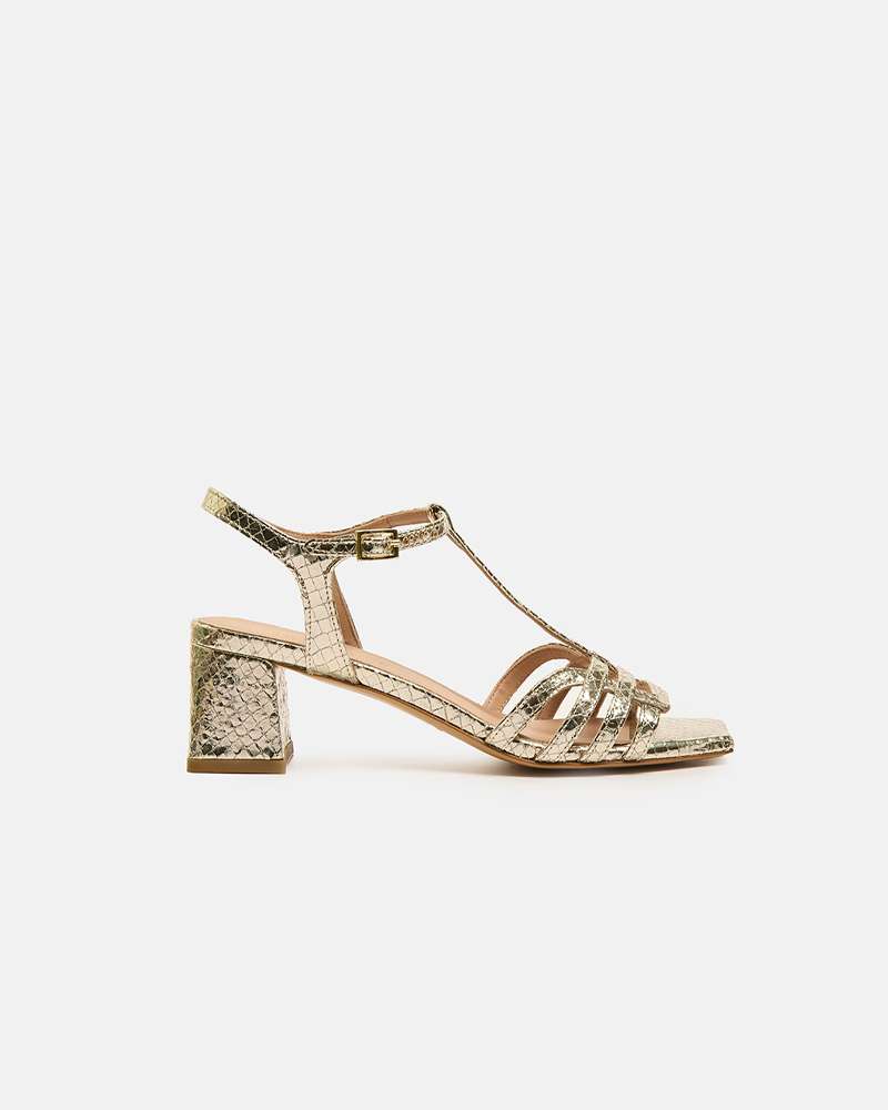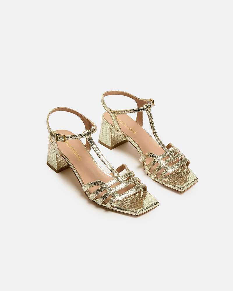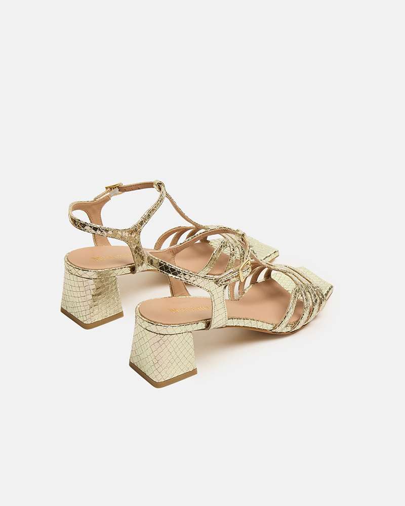 Sandalo in pelle laminato , cinturino caviglia Colore platino Tacco fasciato pelle altezza 5 cm Fodere interne in pelle Sottopiede in pelle Fondo in cuoio Prodotto interamente fabbricato in Italia