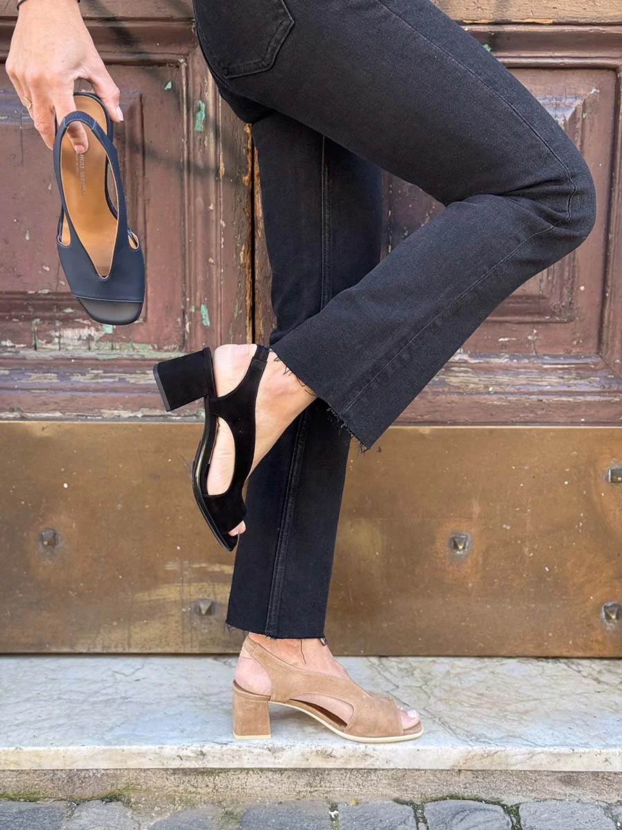 Si chiama “Alba” il nuovo sandalo di “Gianmarco Sorelli”, dalla forma squadrata realizzato in morbida nappa blu navy, caratterizzato dallo scollo a “V”. Tacco cm 5, il fondo è in cuoio, sottopiede in vera pelle.