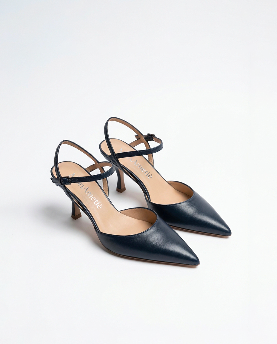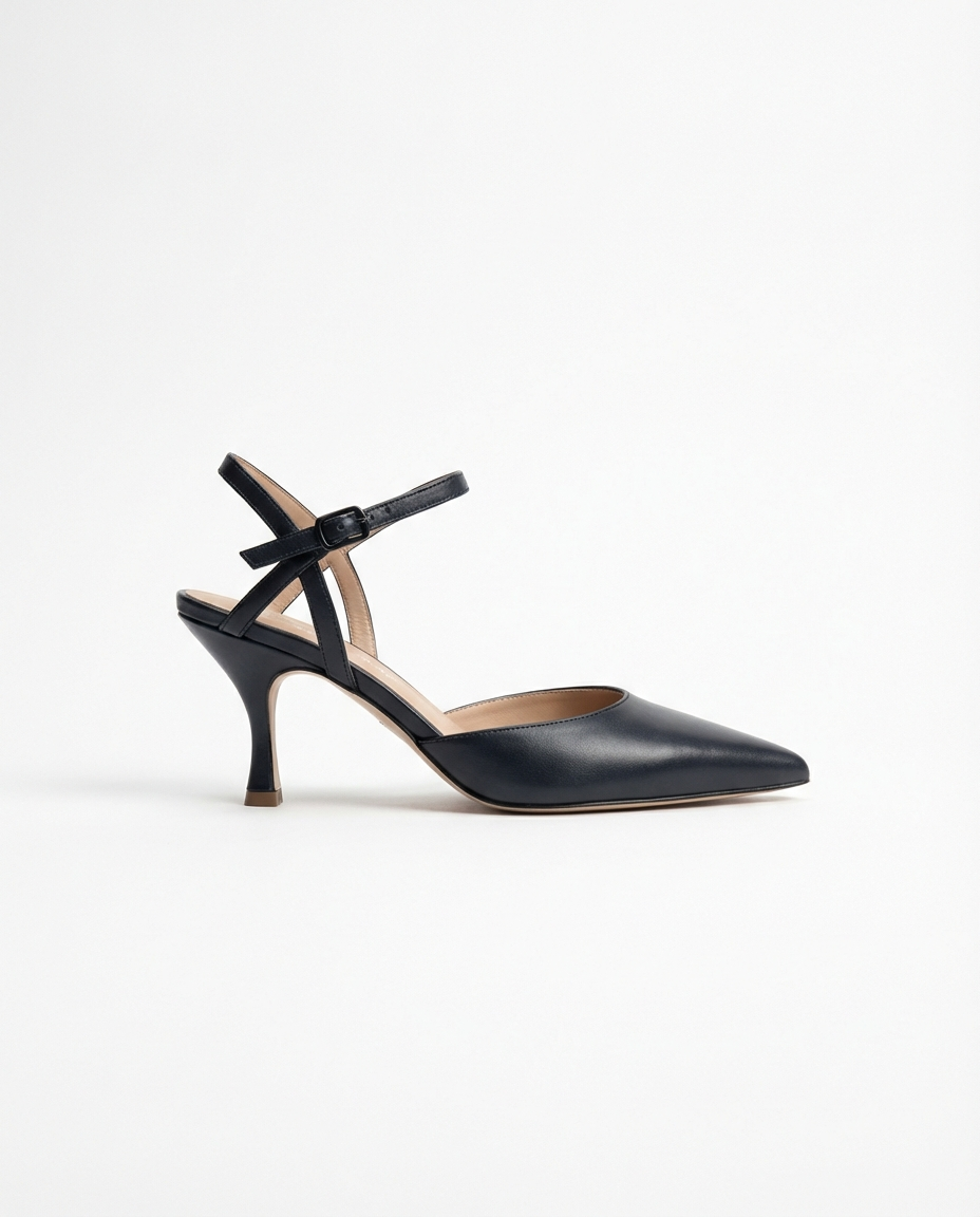 incarna un’eleganza scultorea e senza tempo, pensata per la donna che cerca una calzatura di carattere dal profilo impeccabile. A differenza dei modelli tradizionali, la combinazione del tallone scoperto con il cinturino alla caviglia crea un gioco di linee sofisticato che incornicia il piede, offrendo una stabilità superiore e un’estetica ricercata.