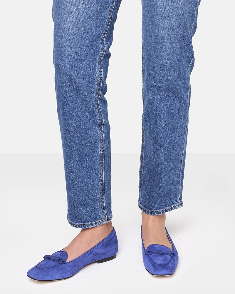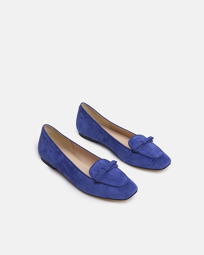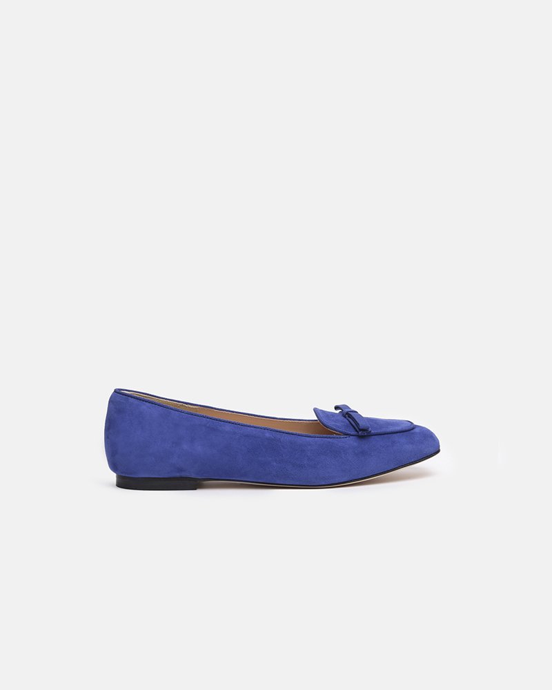 Mocassino in pelle scamosciata con fiocco in gro’