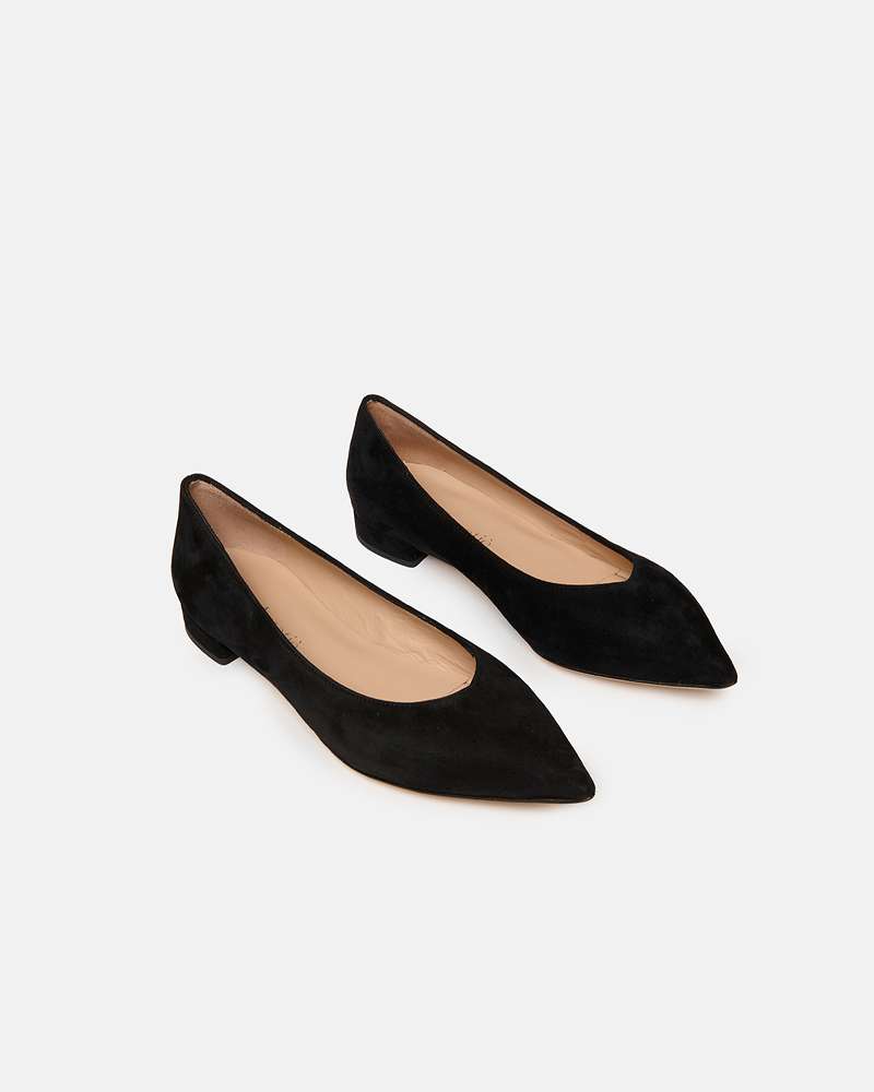 Decollete in camoscio Colore Nero Tacco fasciato pelle altezza 3 cm Fodere interne in pelle Sottopiede in pelle Fondo in cuoio Prodotto interamente fabbricato in Italia