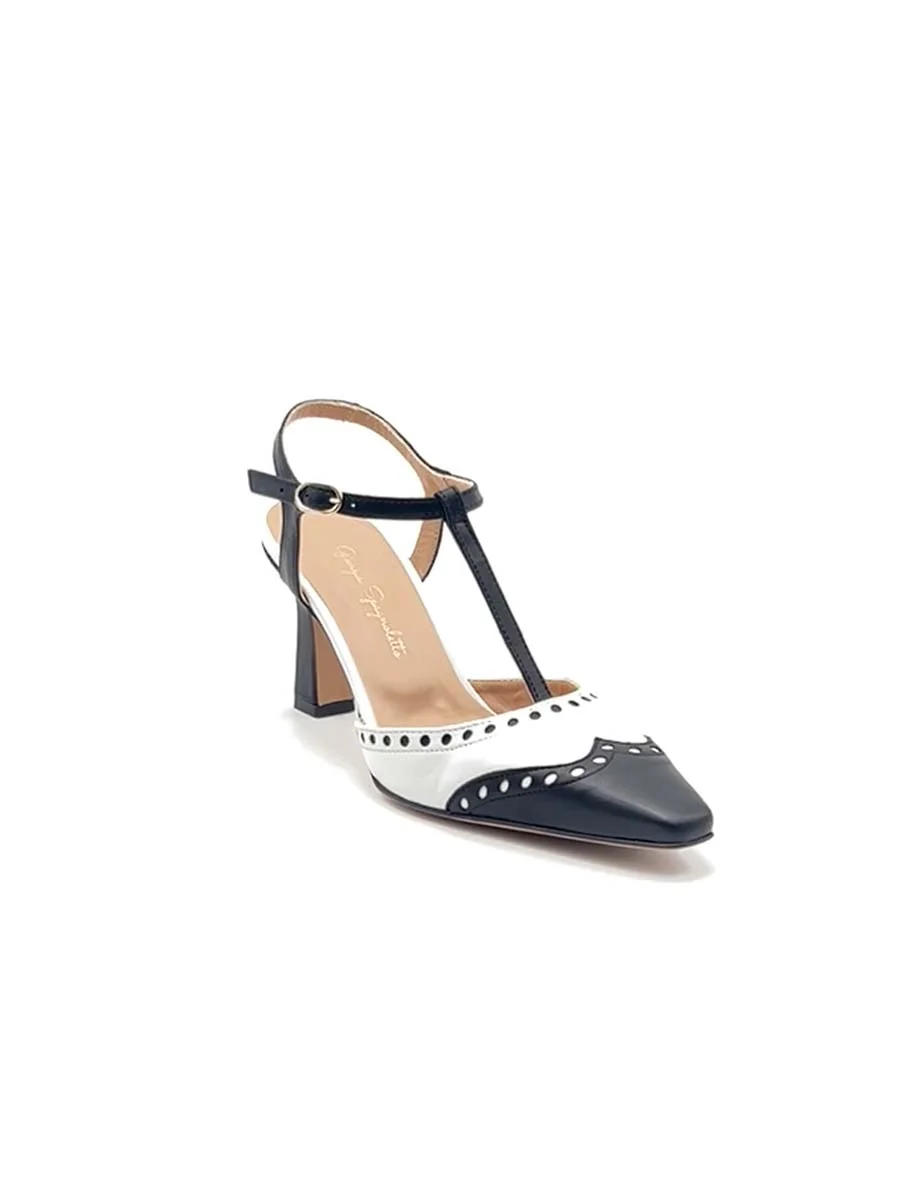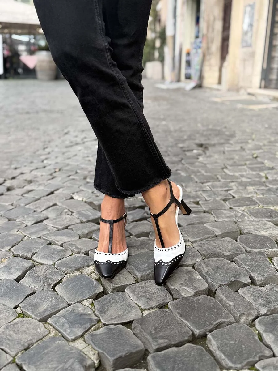 Si chiama “Antonia” la nuova Slingback di questa stagione, dalla forma a punta, realizzata in morbida nappa bianca con tacco e punta a coda di rondine a contrasto in nappa nera. Tacco a rocchetto cm 7.