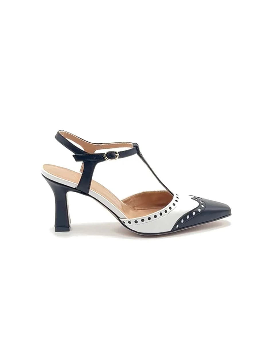 “Antonia” Slingback in Nappa Bianca e Blu Navy