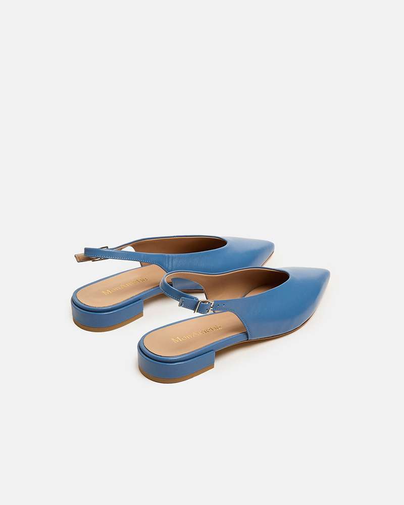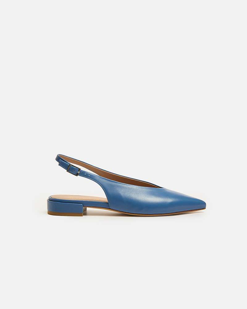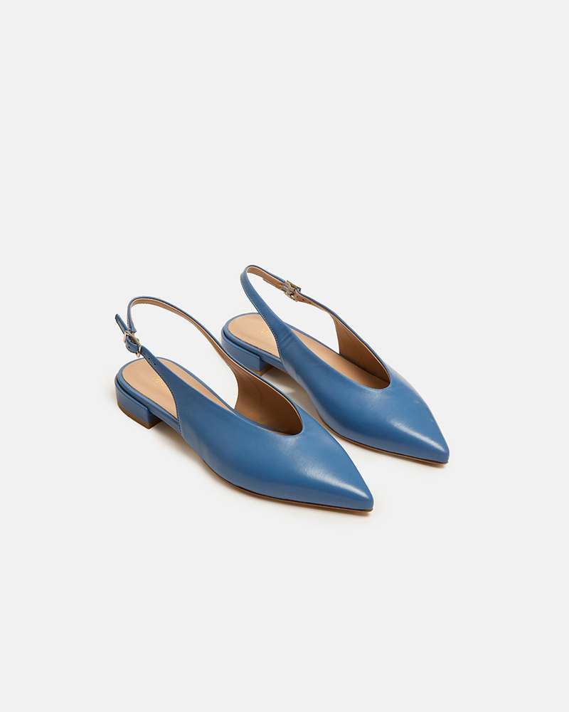 Sling Back in pelle Colore Celeste Tacco in cuoio altezza 1 cm Fodere interne in pelle Sottopiede in pelle Fondo in cuoio Prodotto interamente fabbricato in Italia