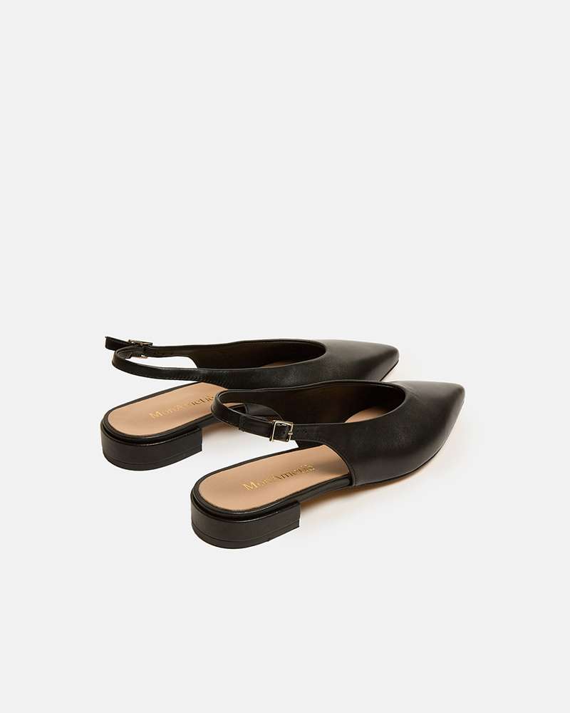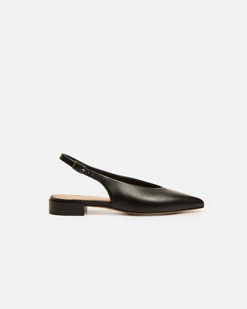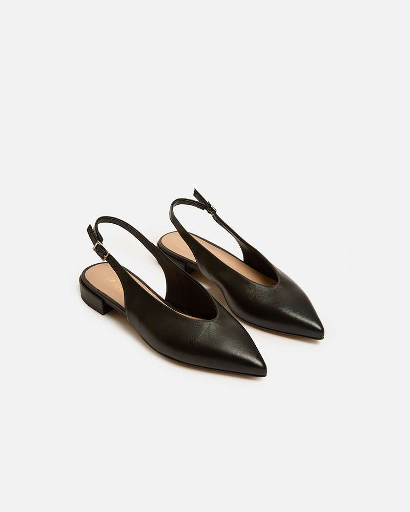 Sling Back in pelle Colore Nero Tacco in cuoio altezza 1 cm Fodere interne in pelle Sottopiede in pelle Fondo in cuoio Prodotto interamente fabbricato in Italia