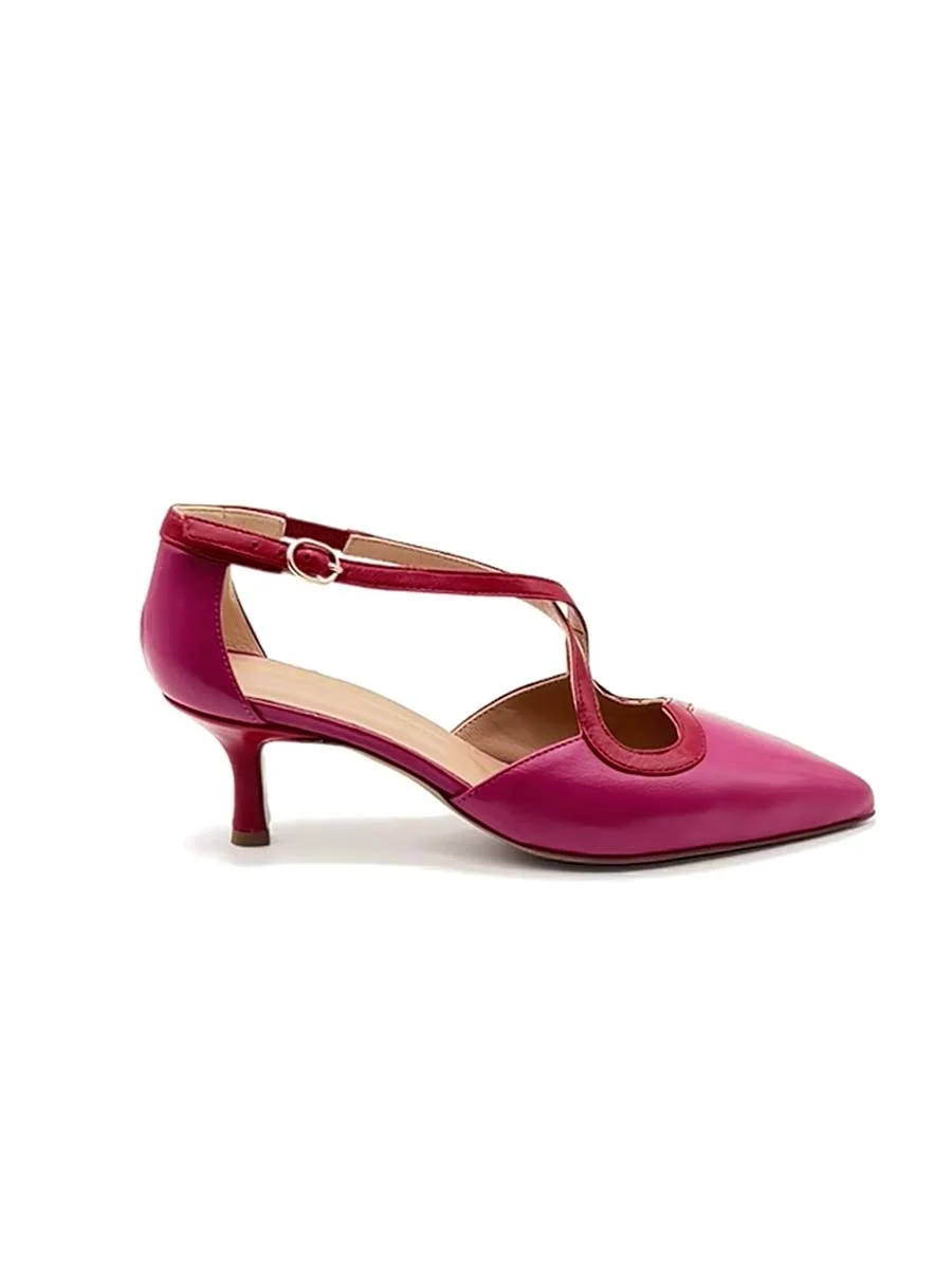 Si chiama “Barbara” il nuovo Decollete di questa stagione dalla forma a punta realizzato in morbida vernice fucsia, con sottile cinturino a incrocio regolabile alla caviglia e tacco a contrasto rosso, e con lavorazione a sacchetto che consente alla scarpa oltre che la leggerezza la massima flessibilità e comodità. Tacco a rocchetto cm 5, il fondo è in cuoio.