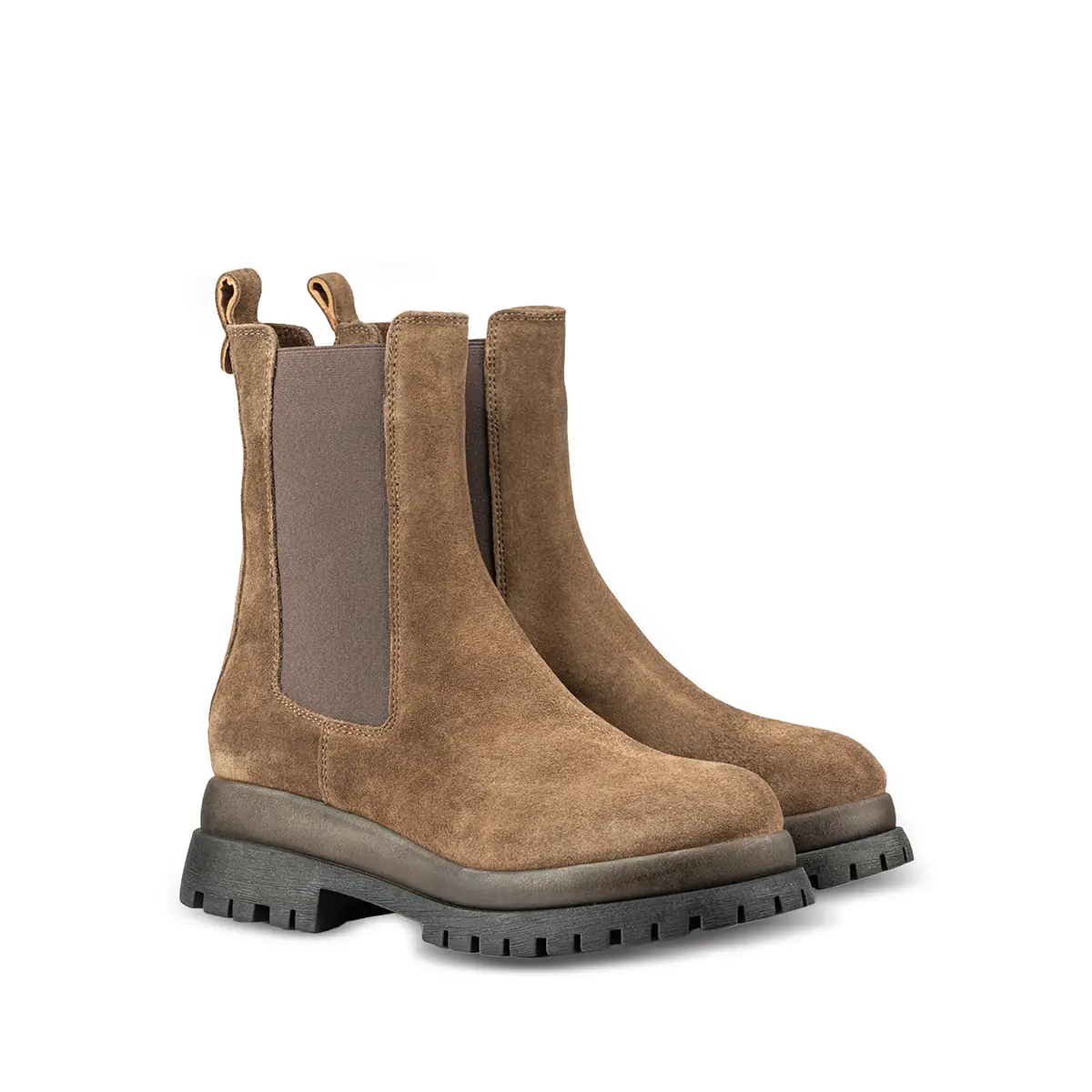 Tronchetto in camoscio con elastici laterali fondo gomma produzione italiana