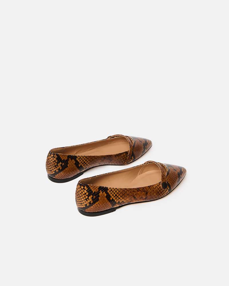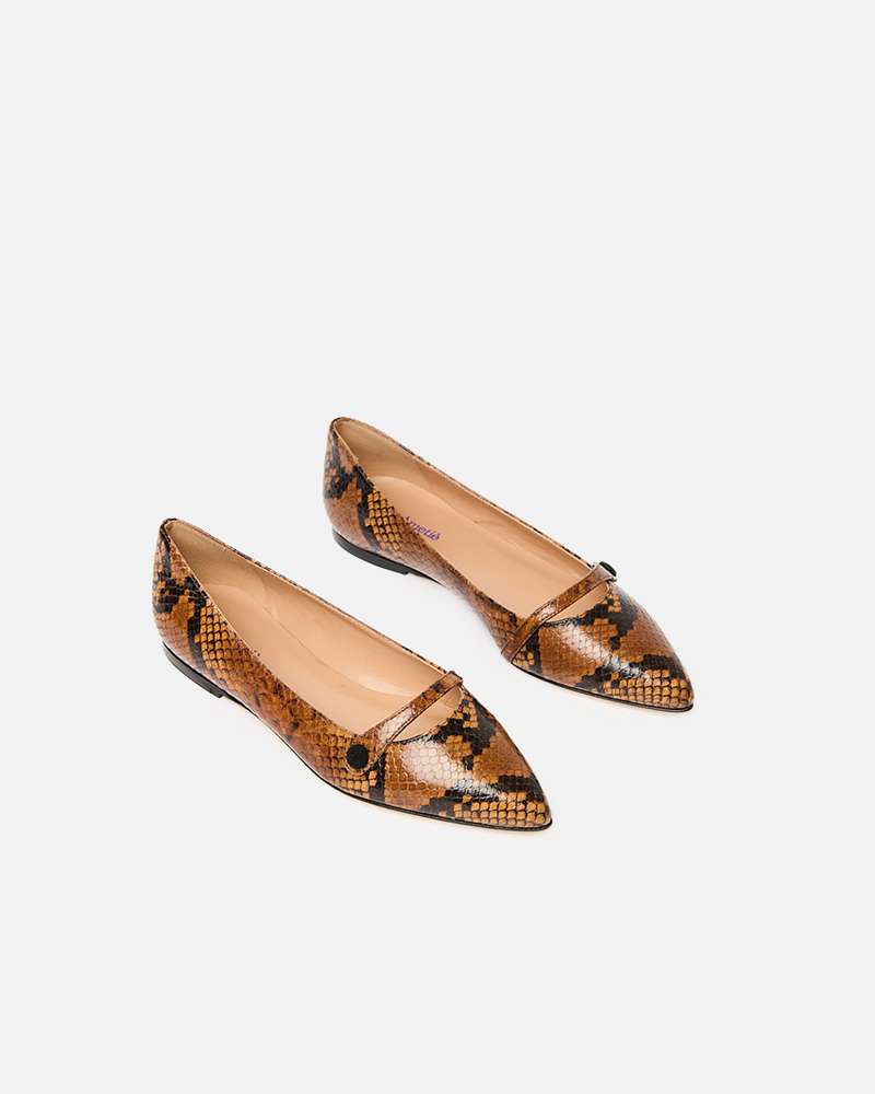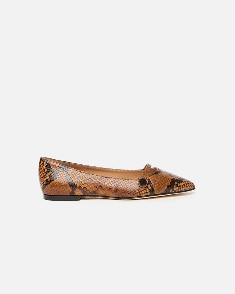 Ballerina in pitoncino Colore Marrone bruciato Tacco rivestito in pelle altezza 0,5 cm Fodere interne in pelle Sottopiede in pelle Fondo in cuoio Prodotto interamente fabbricato in Italia