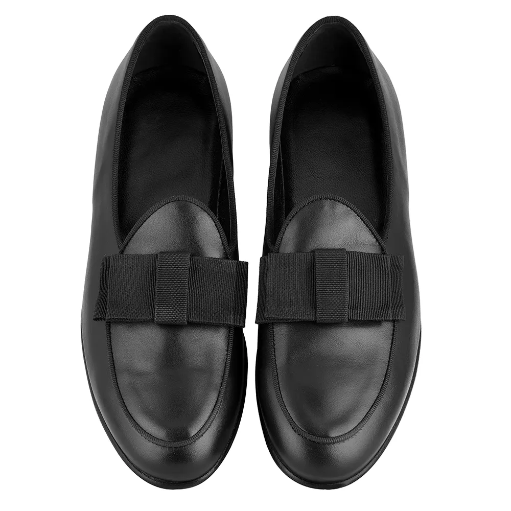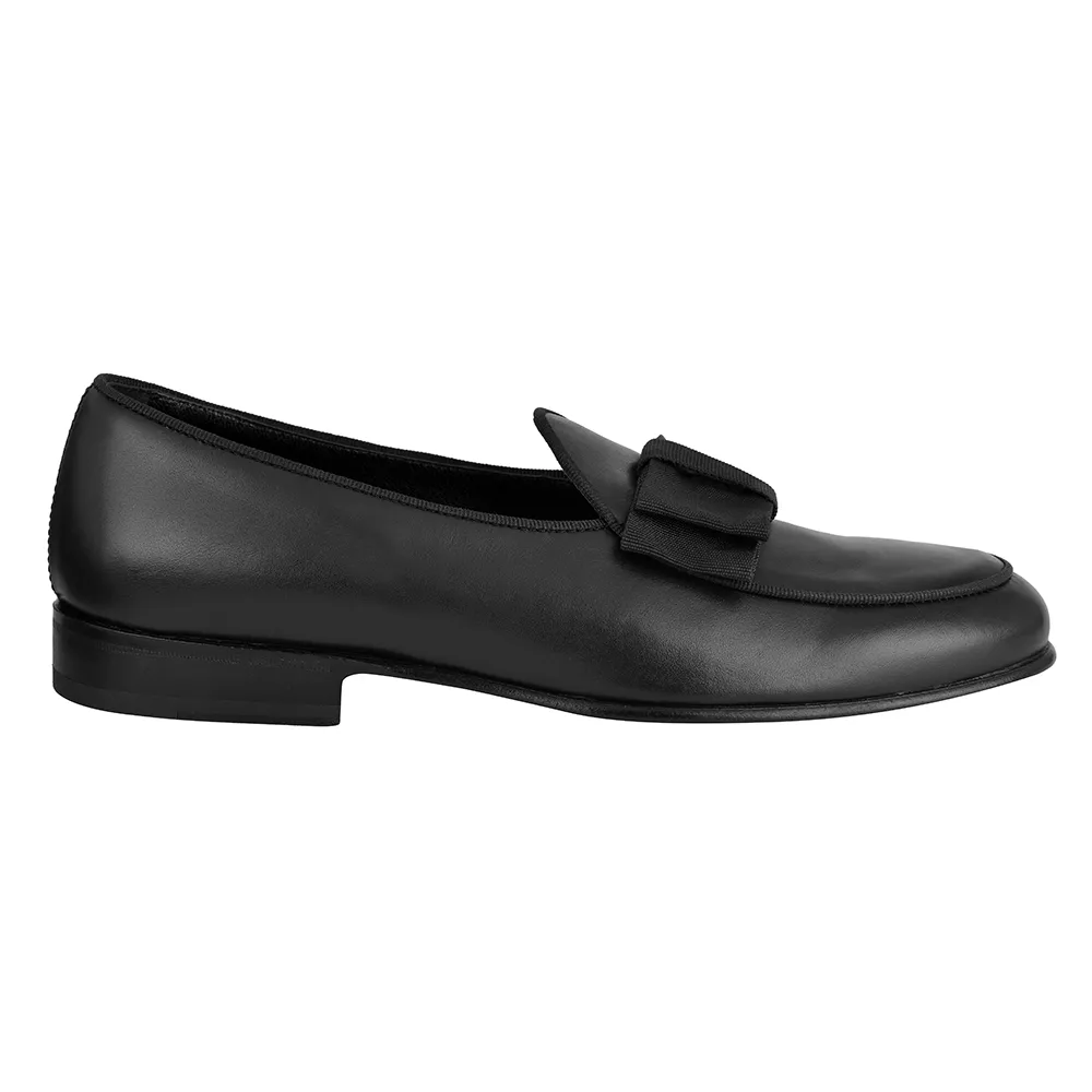 La belgian loafer andrew art.8322 è un mocassino belgian loafer in Vitello nero con Fiocco a Papillon in Gros Grain Nero