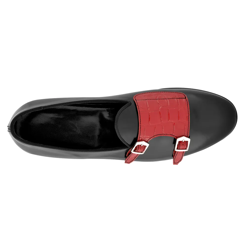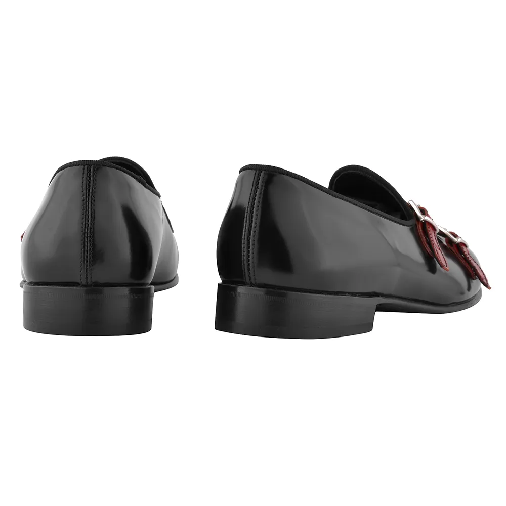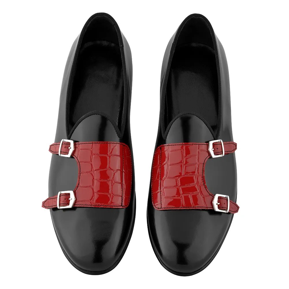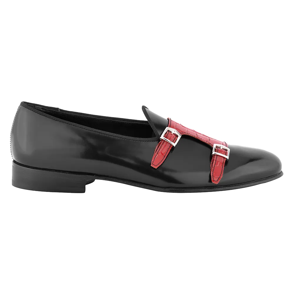 La belgian loafer cayman art.8319 è un mocassino belgian loafer in vitello abrasivato nero e vernice stampa cocco rosso