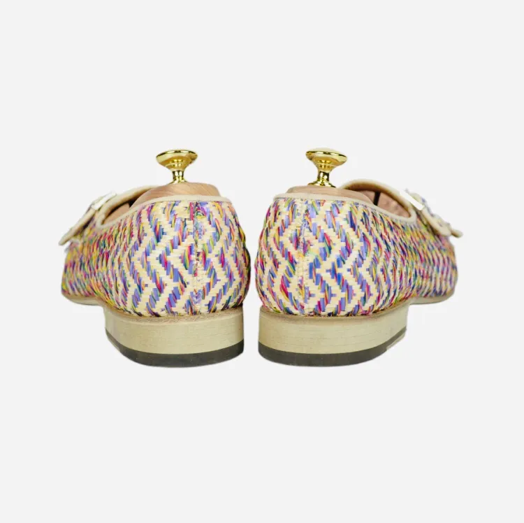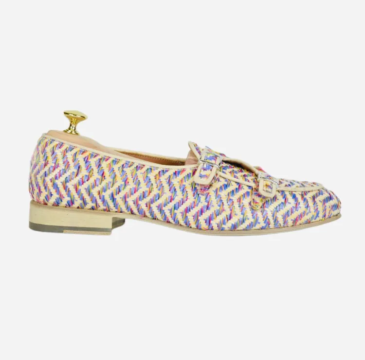 La belgian loafer Giamaica – art.224a è un belgian Loafer/mocassino realizzato in rafia multicolore con lavorazione particolare,intrecciata zig zag