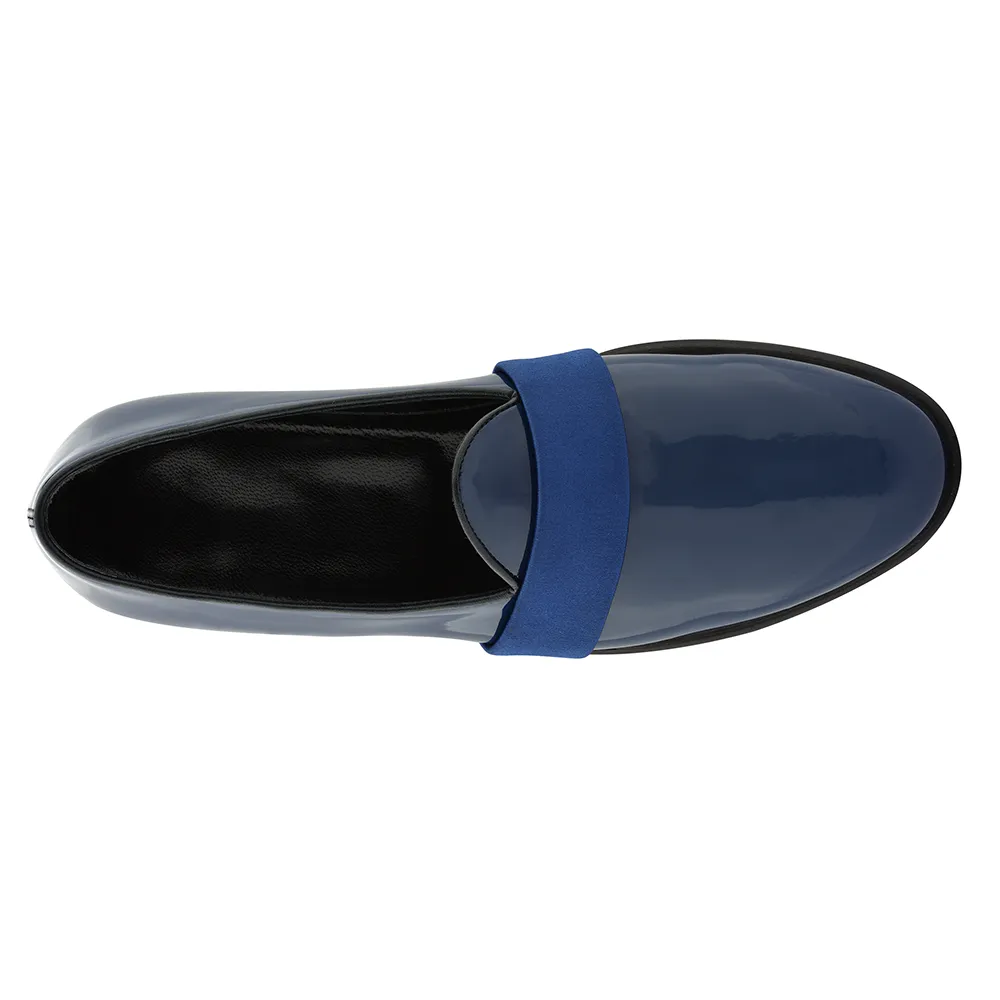 Classica pantofola belgian loafer realizzata in vernice blu scuro in linea con i colori della stagione,abbinabile praticamente a qualsiasi tipo di abbigliamento eccezion fatta per lo sportivo