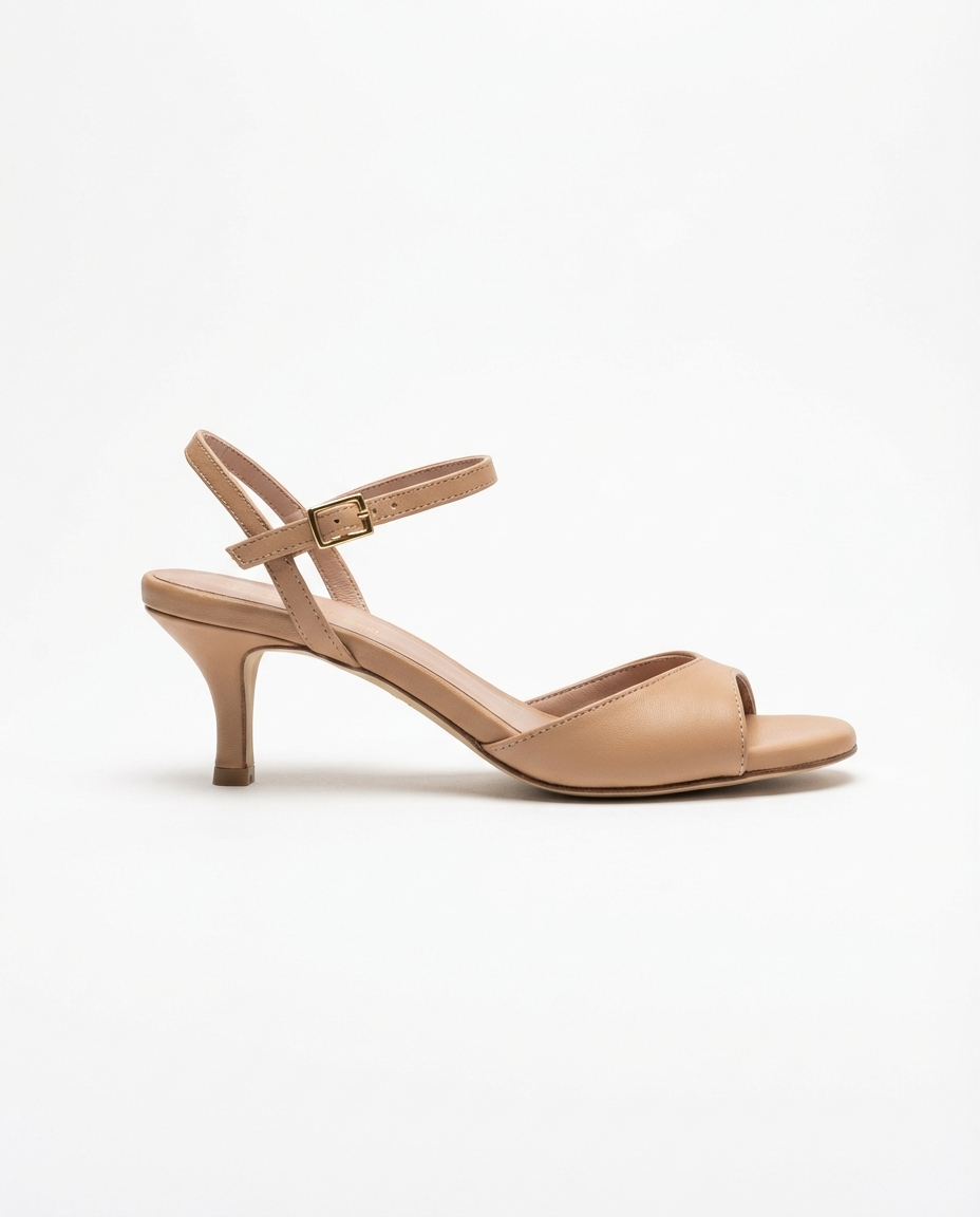 DESIGN: Modello minimal “nude” con punta aperta e tallone scoperto.