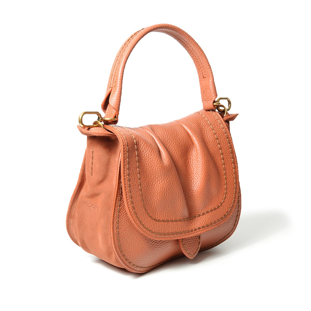 Borsa a sella in pelle martellata e suede coccio