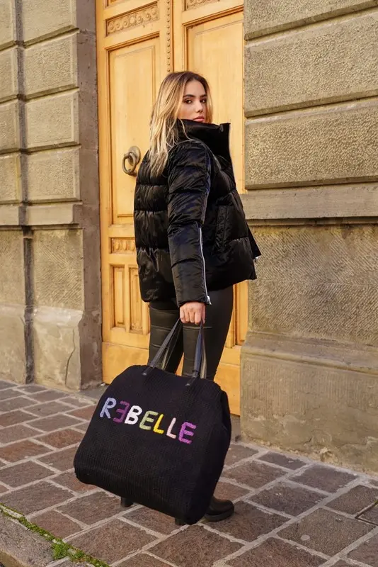 La particolirtà della borsa è il logo REBELLE ricamato a mano con un colore diverso.