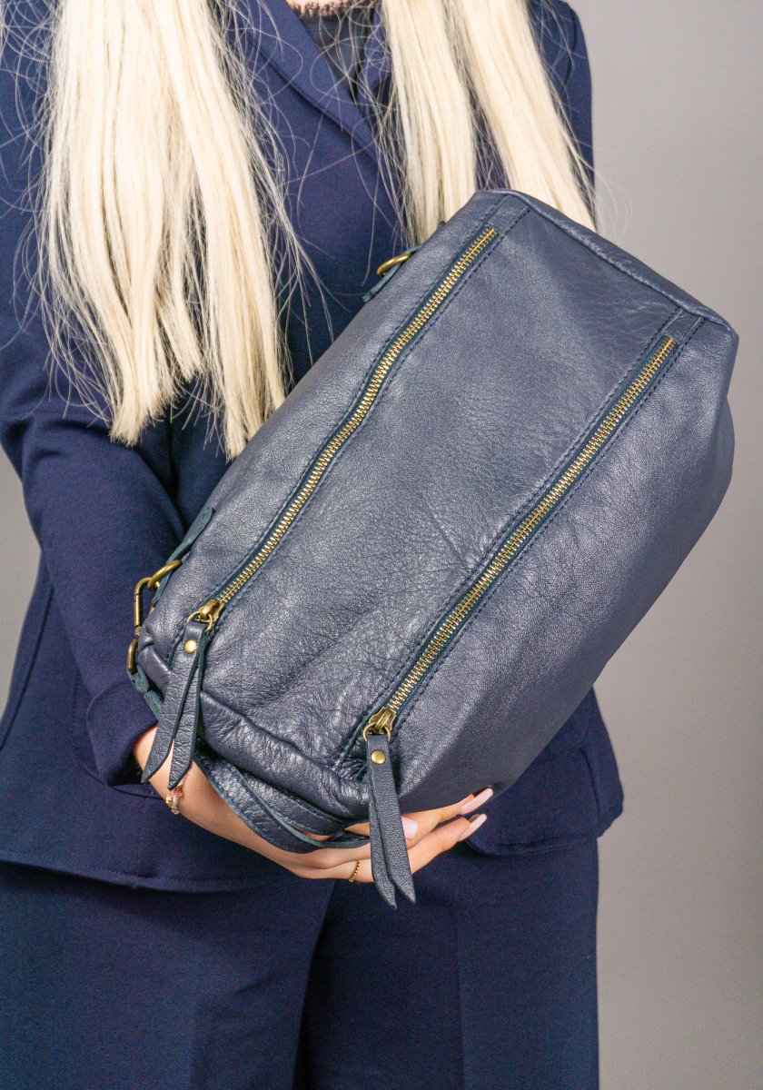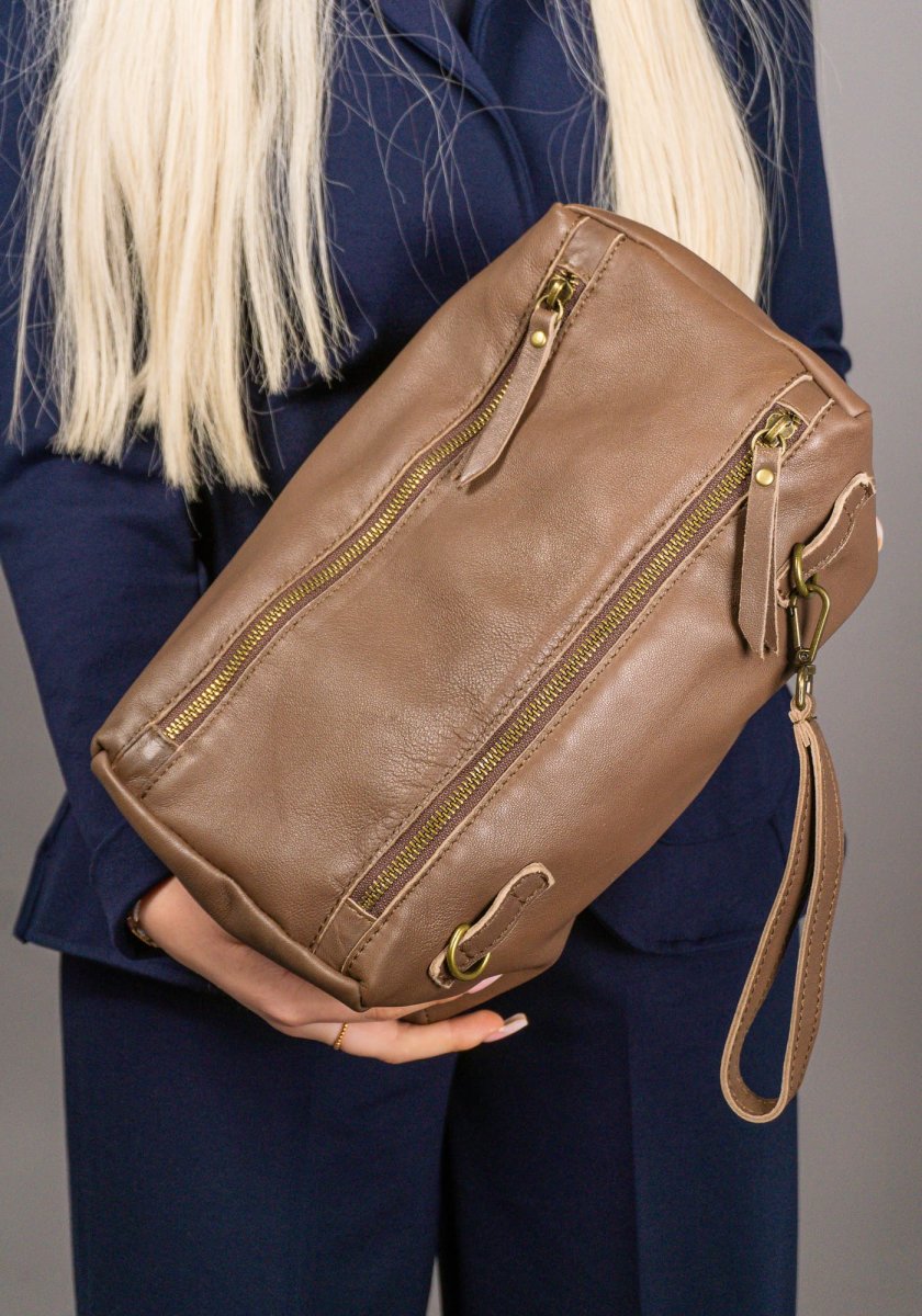 Realizzata in morbida vera pelle, unisce eleganza e funzionalità grazie al suo design versatile e alle dimensioni più ampie rispetto alla versione piccola, offrendo spazio extra senza perdere compattezza.