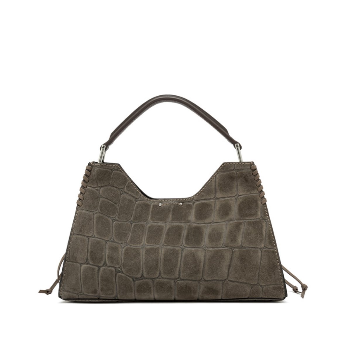 Borsa Aurora in pelle scamosciata a maxi stampa cocco color daino