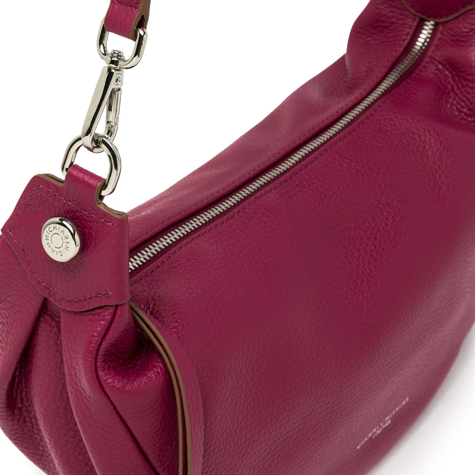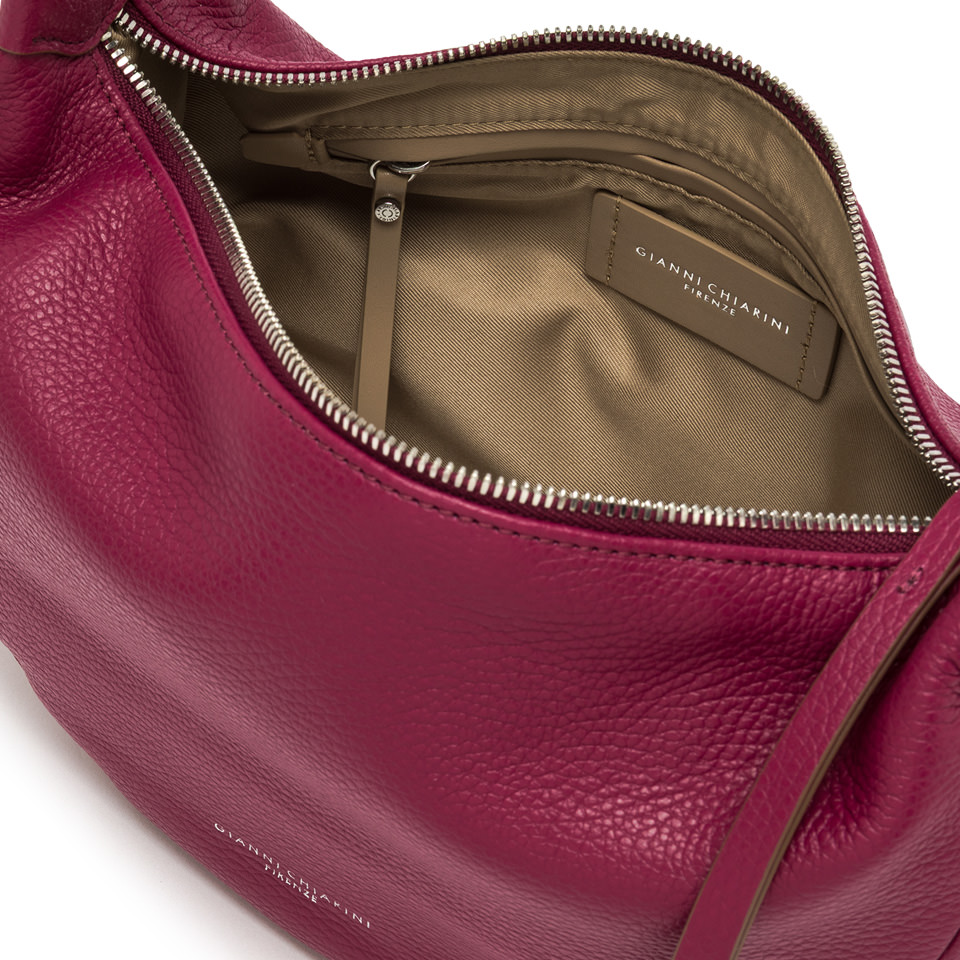 Borsa Gianni Chiarini modello Aisha in pelle martellata rosso fragola. Ha forma a sacca e chiusura a zip. Ha ampio manico e tracolla regolabile. Dimensioni cm 29x18x12