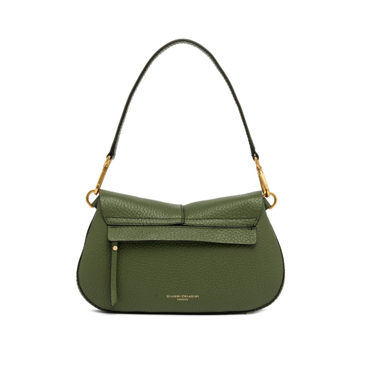- Borsa modello Helena Round modello iconico in pelle a grana maxi verde.