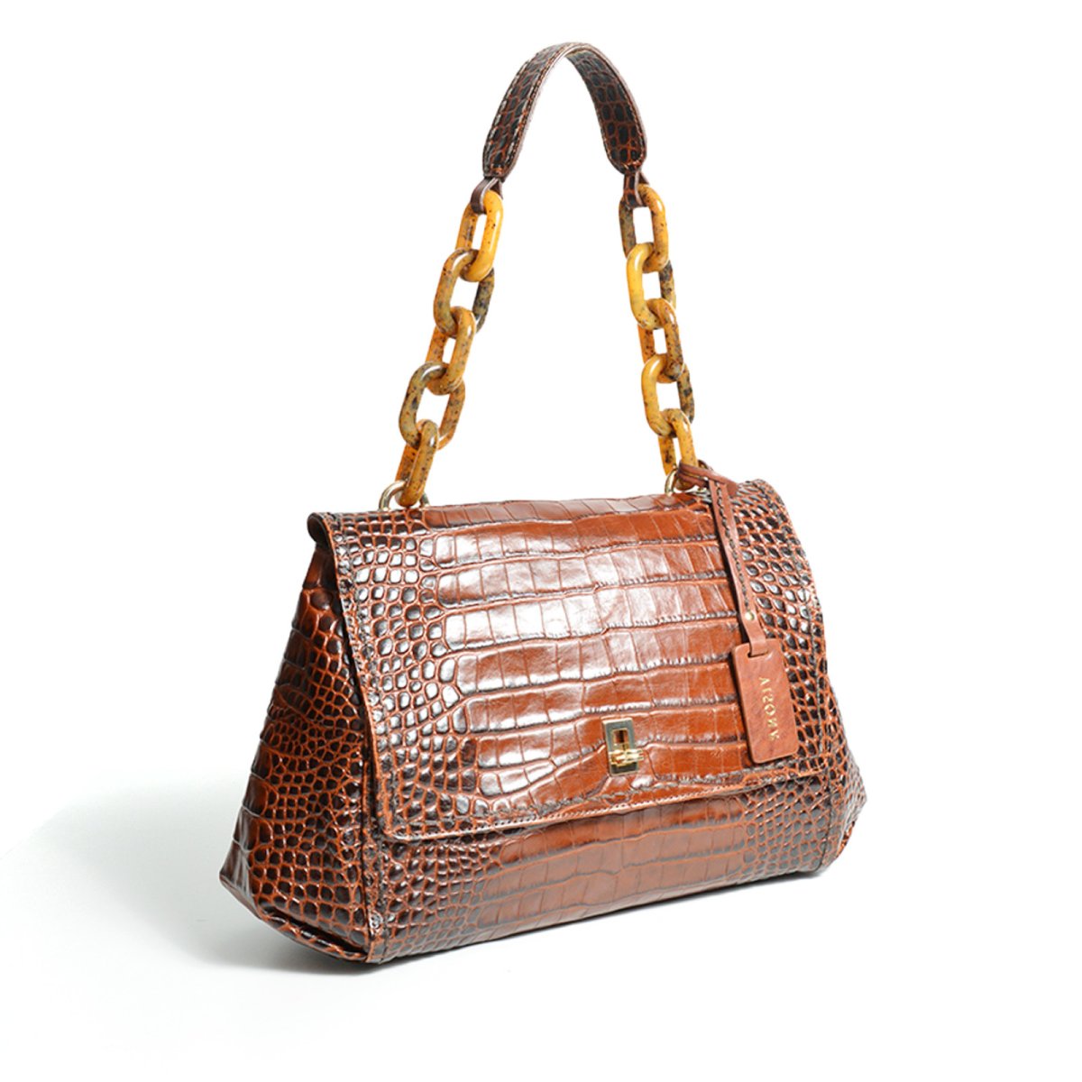 Borsa Miami Florida in pelle stampa cocco brandy