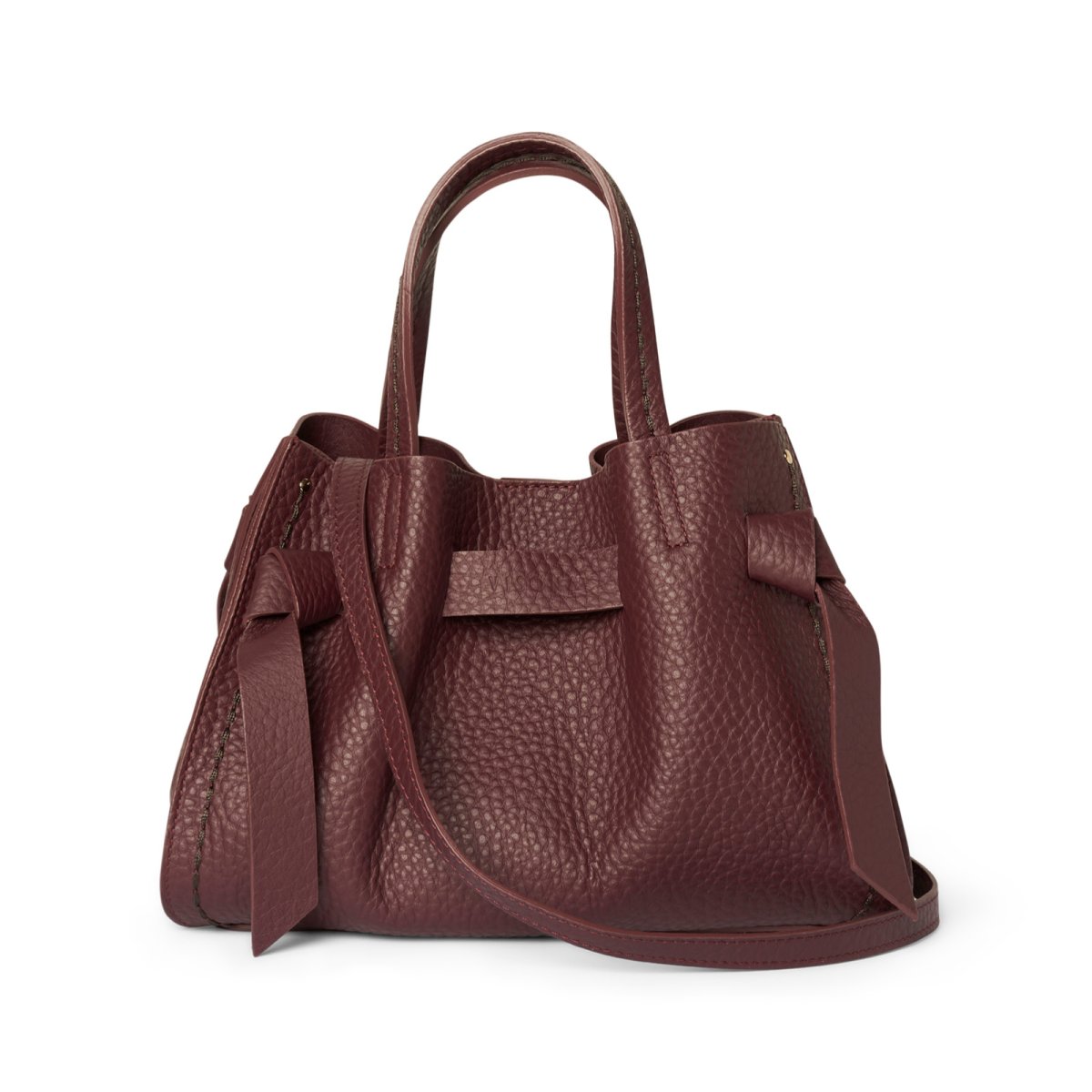 - Modello a bauletto con due manici in morbida pelle a grana grossa bordeaux.