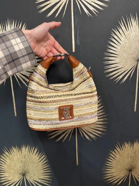 NUOVI ARRIVI REFRESH BORSETTA A MANO RAFIA 183393 Borsetta a mano in ecopelle e rafia Refresh, con tracolla inclusa, disponibile in due varianti colore.