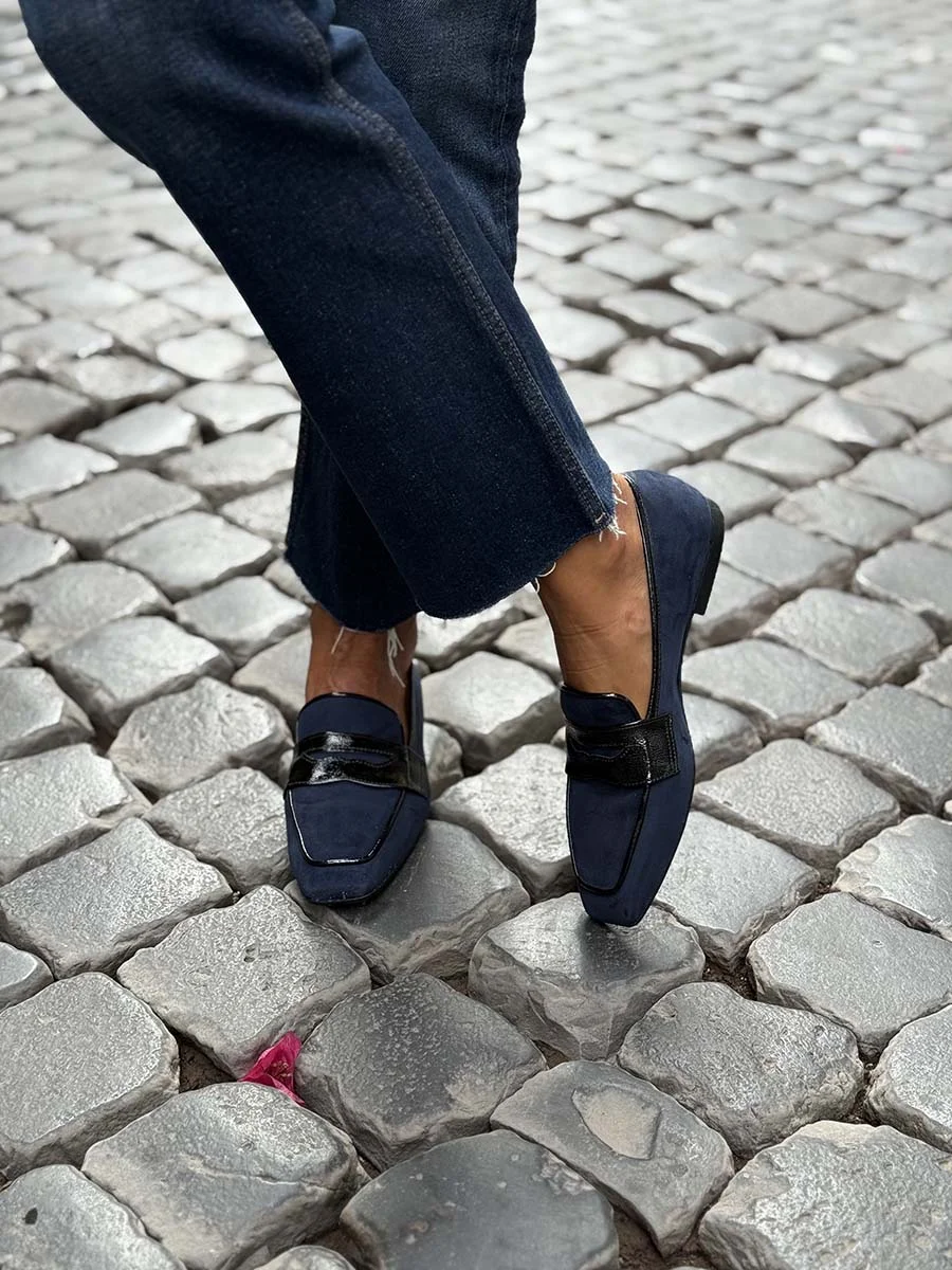 “Caterina” Mocassino in Camoscio Blu Navy