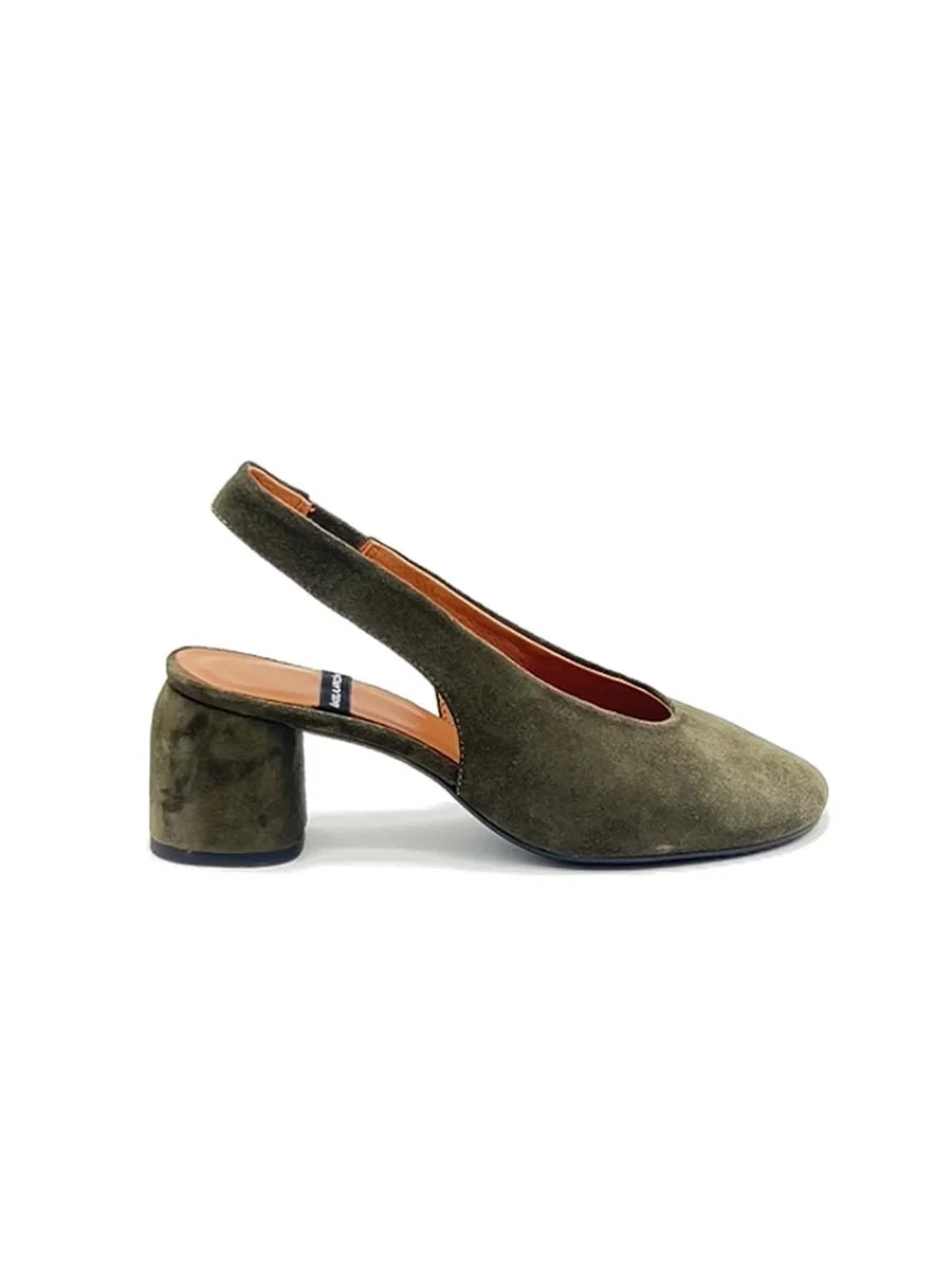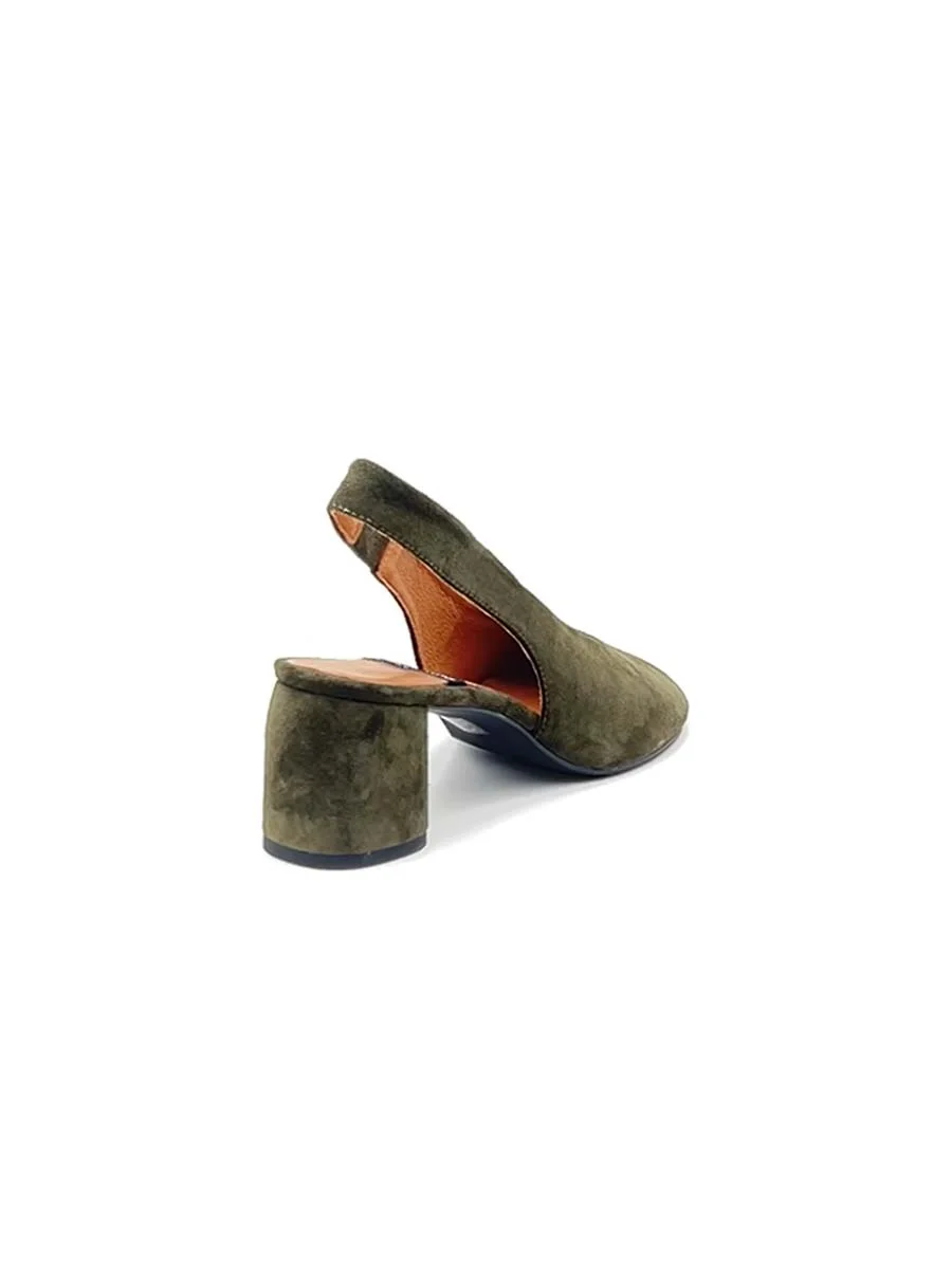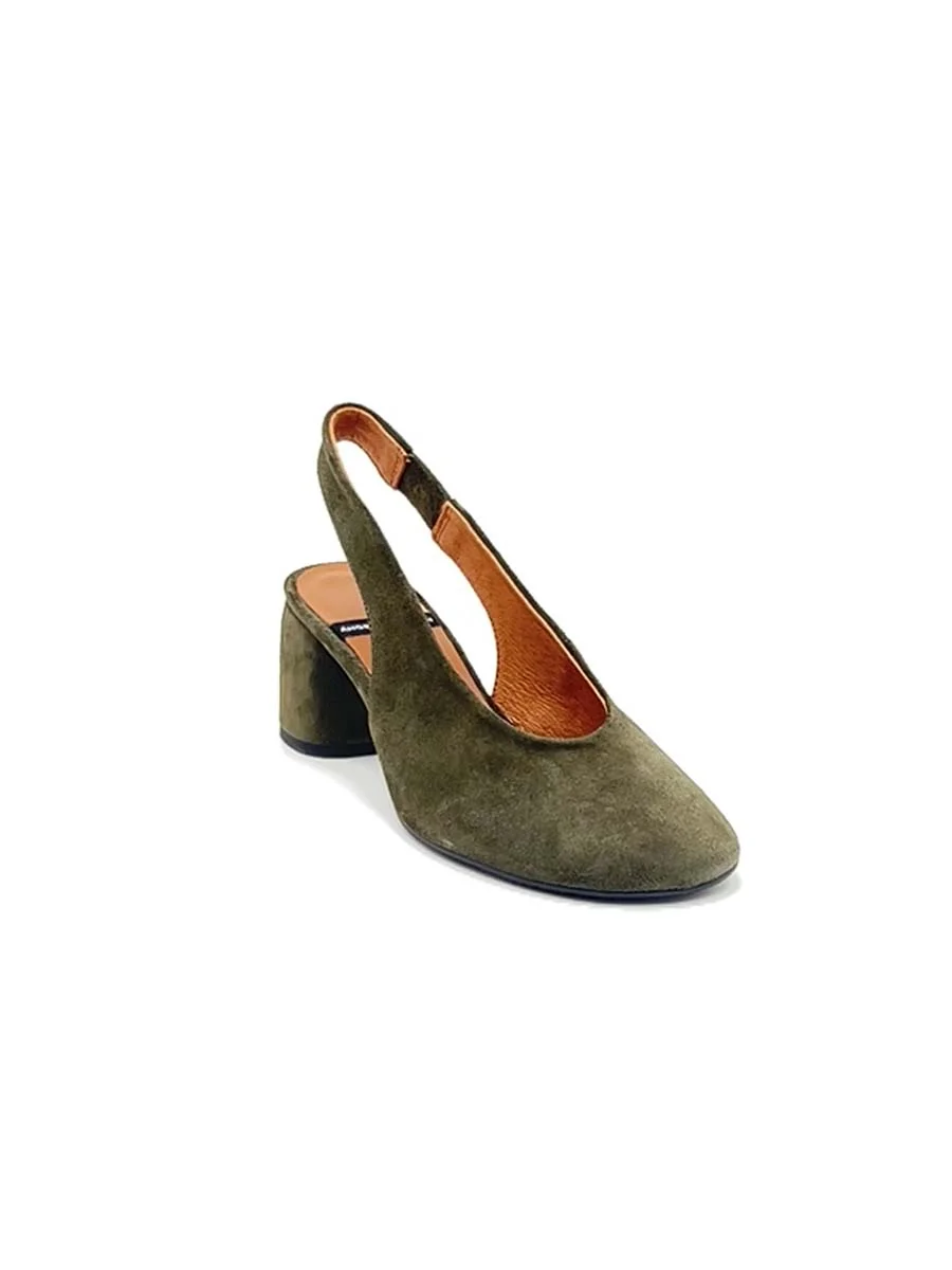 Si chiama “Cecile” il nuovo modello di Angel Alarcon, Slingback dalla forma stondata realizzato in morbido camoscio verde. Tacco cm 6, il fondo è in gomma.