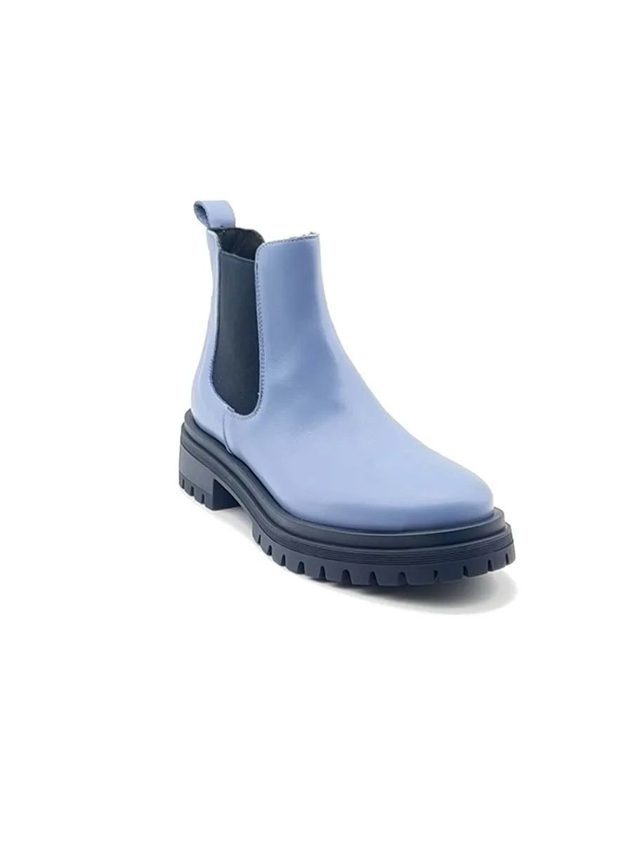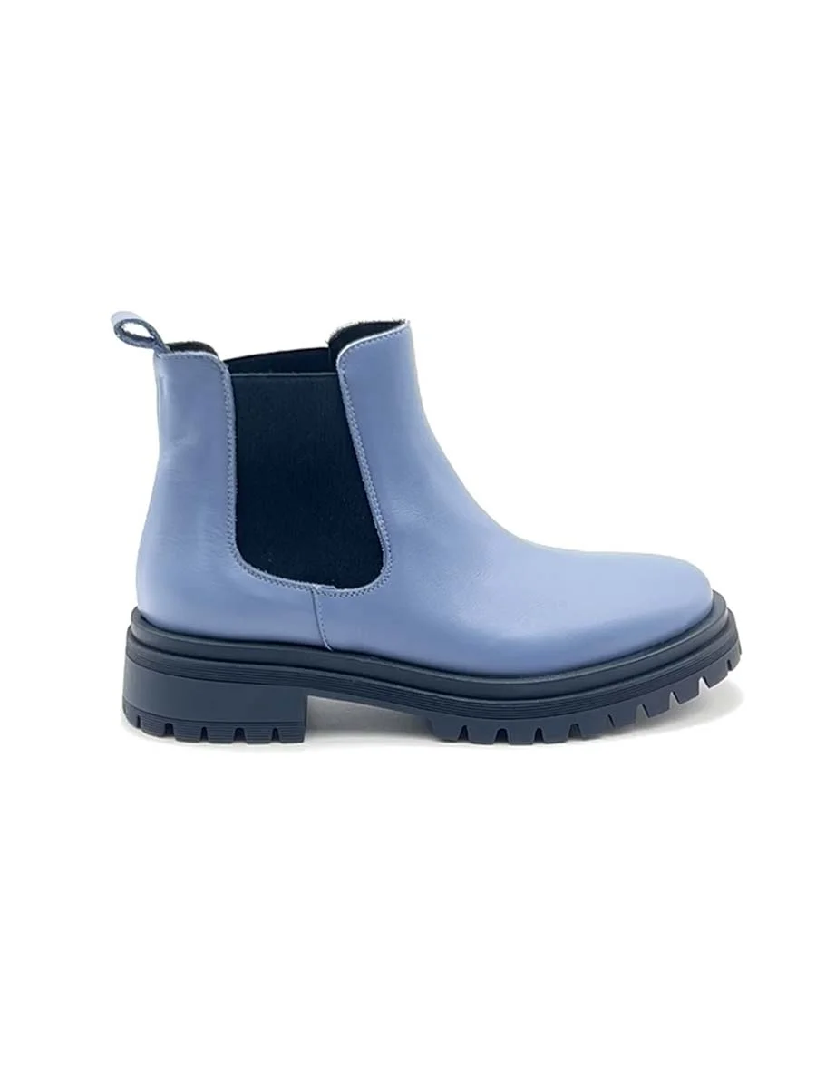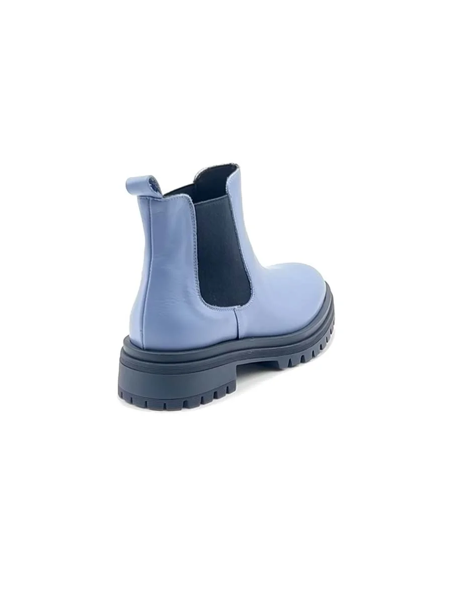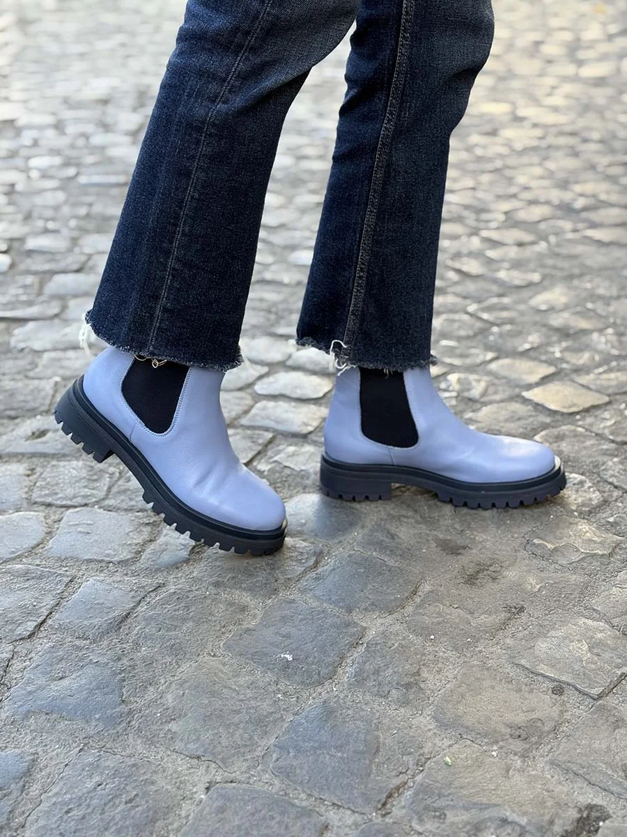 Il nostro nuovo Chelsea basso di questa stagione, realizzato in morbida nappa cielo con inserti laterali elasticizzati e suola a contrasto blu navy. Tacco cm 3,5, il fondo crunch.