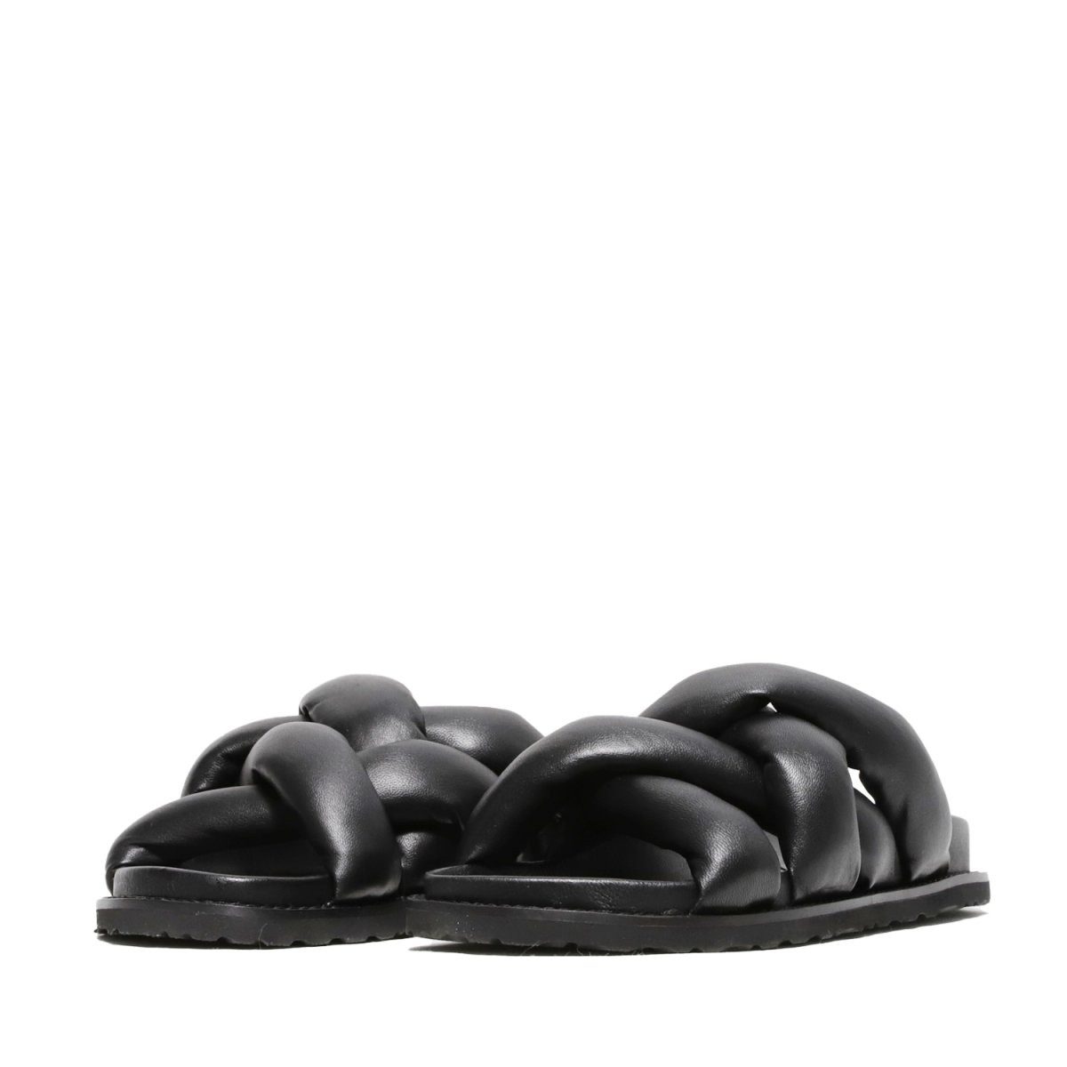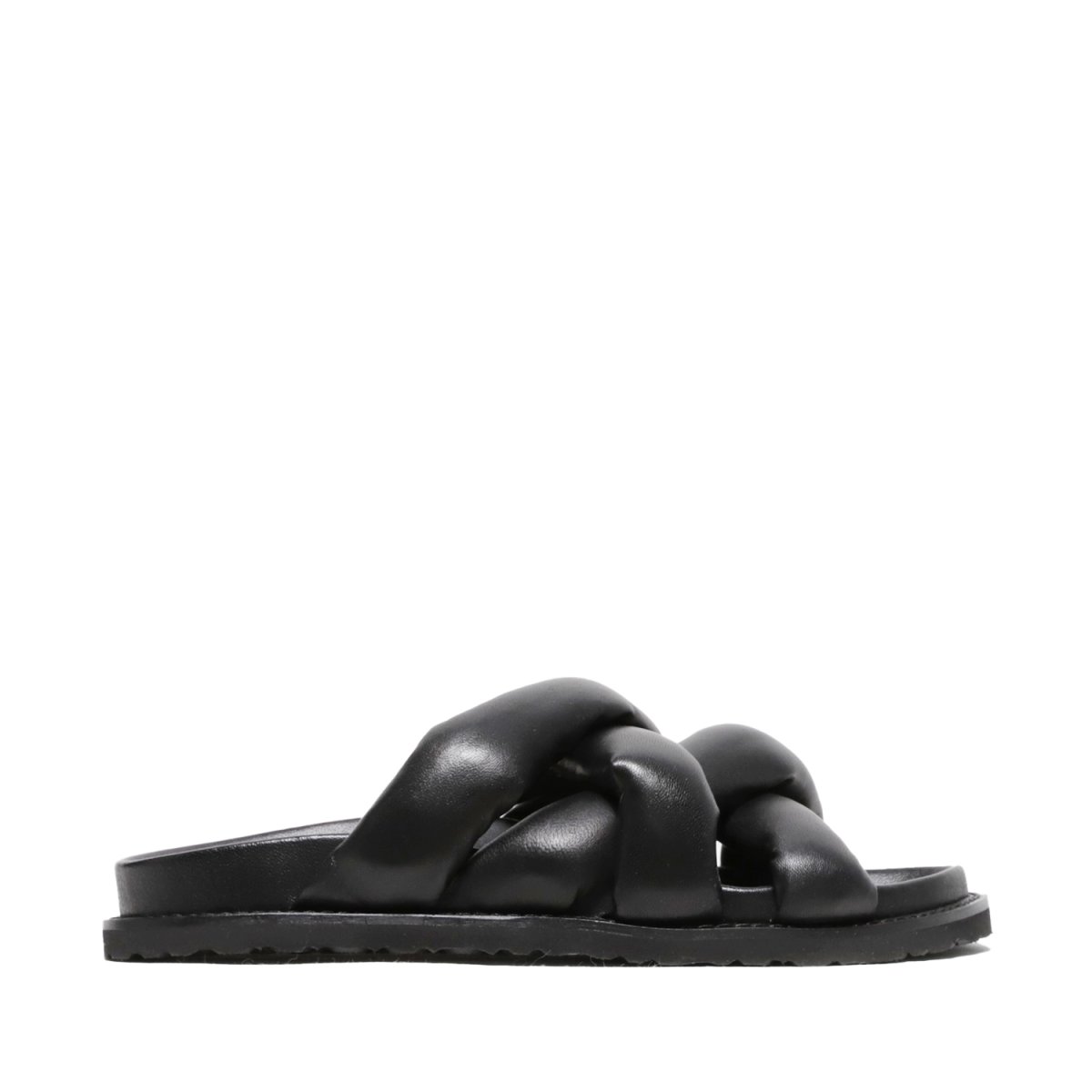 Ciabatta a fasce imbottite di nappa nera. Calzata regolare