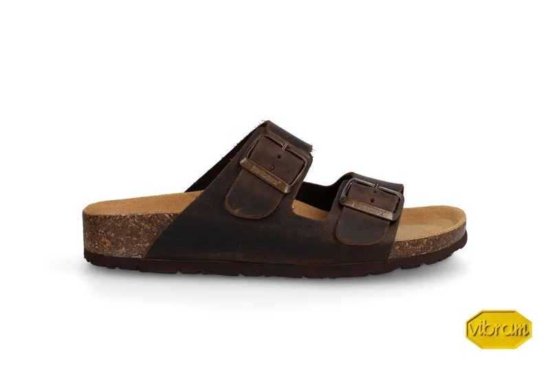 NUOVI ARRIVI 11THESIS VIBRAM CRAZY HORSE Questa ciabatta 11 Thesis Vibram Crazy Horse di Bio Natura ha la tomaia in pelle ingrassata per un effetto used super cool. Ha una doppia allacciatura con fibbia nikel free per renderla adattabile a qualsiasi calzata ed una suola in gomma Vibram anti-scivolo per una perfetta aderenza al terreno.