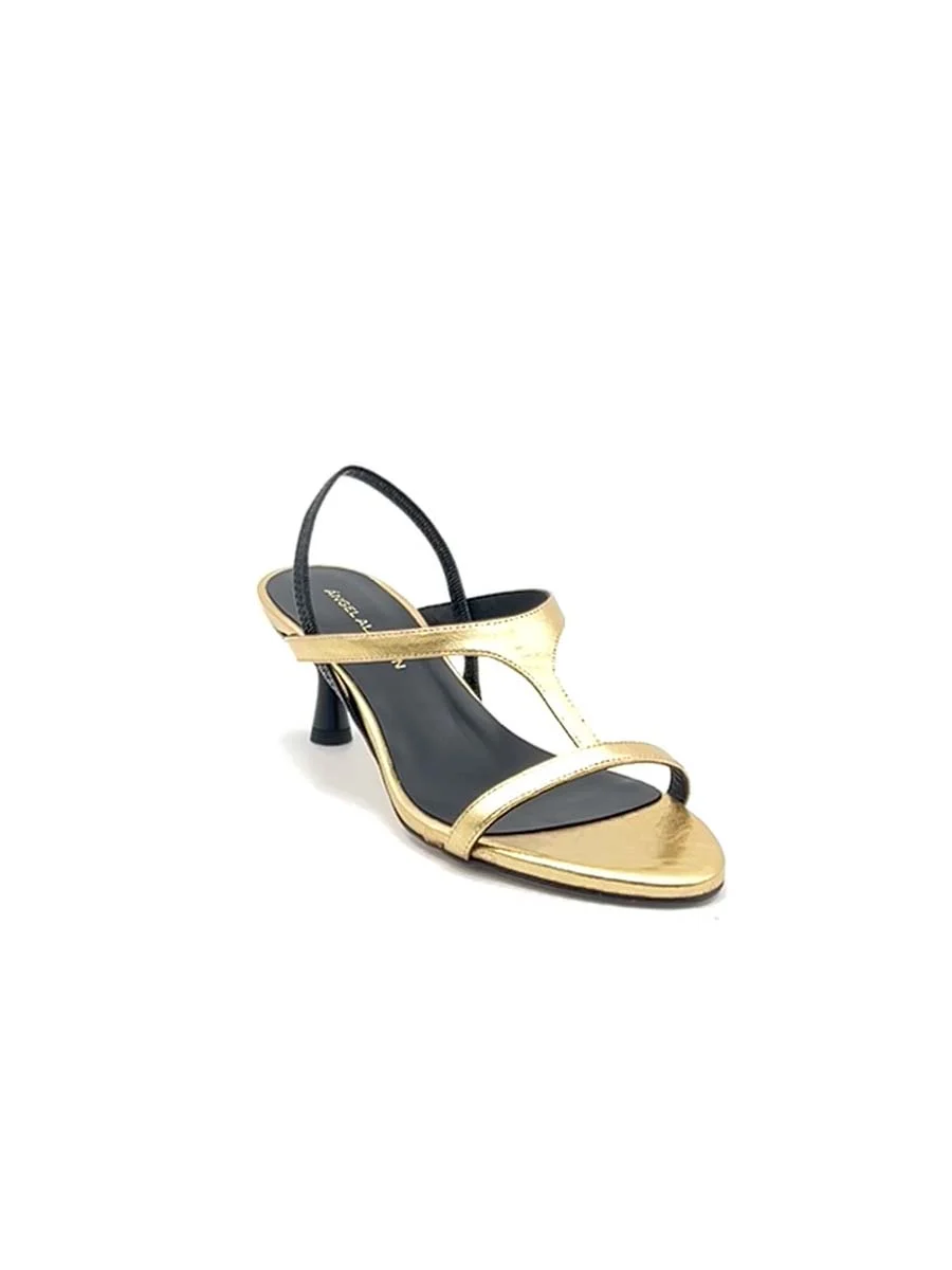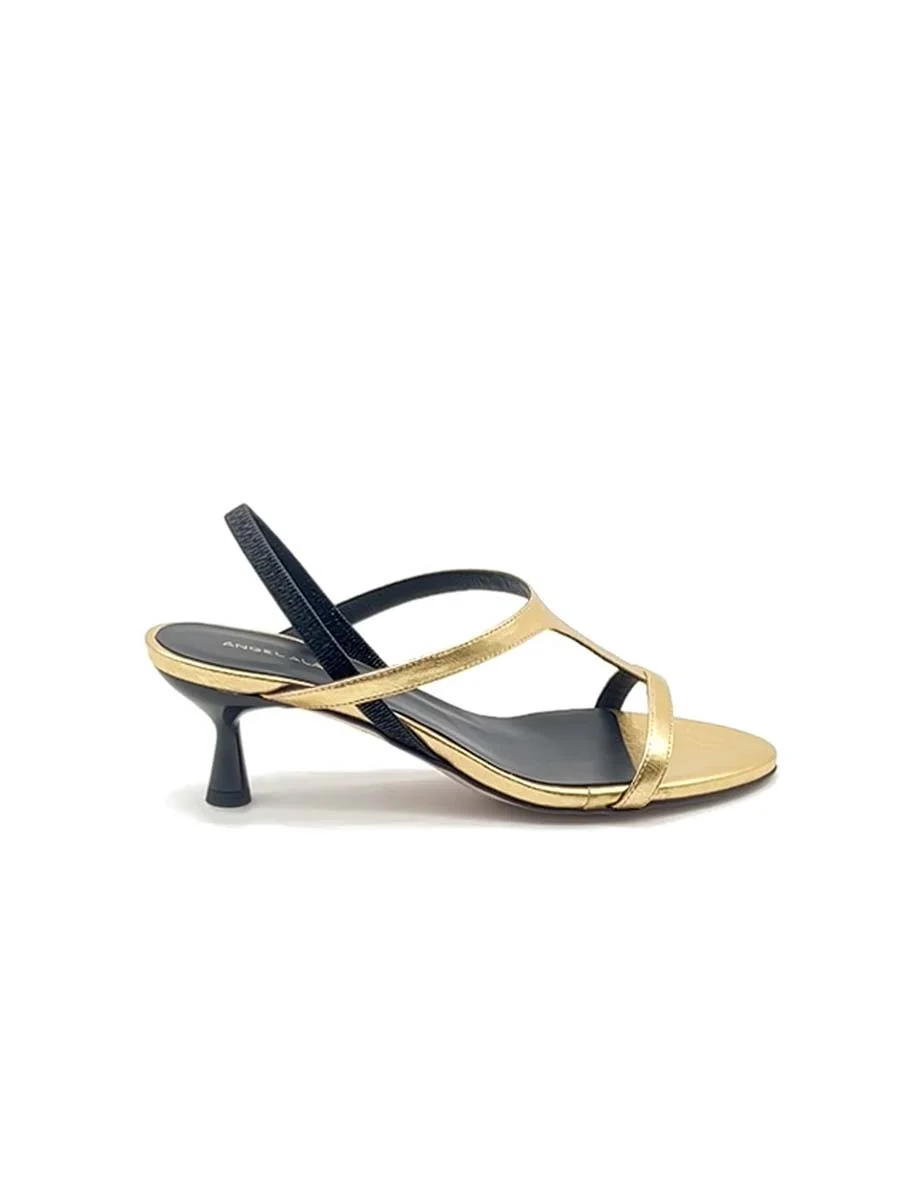 Si chiama “Cinzia” il nuovo modello del Brand “Angel Alarcon”. Sandalo dalla forma tonda realizzata in morbida pelle laminata oro con sottili cinturini in tinta. Tacco cm 5, il fondo è in cuoio.