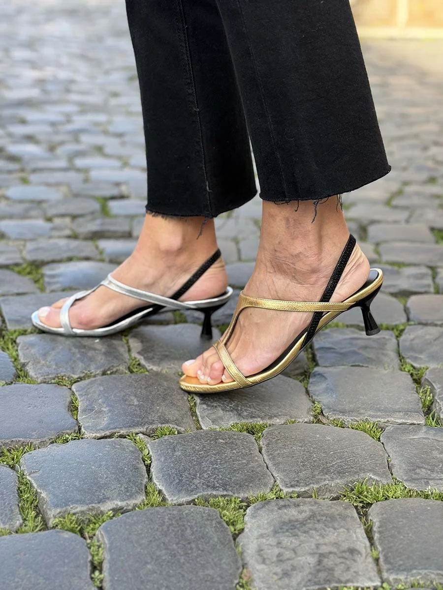 “Cinzia” Sandalo in Pelle Laminata Oro