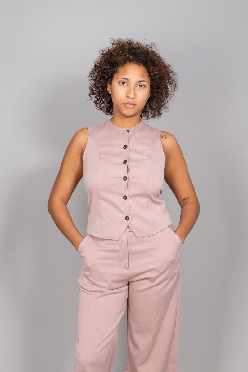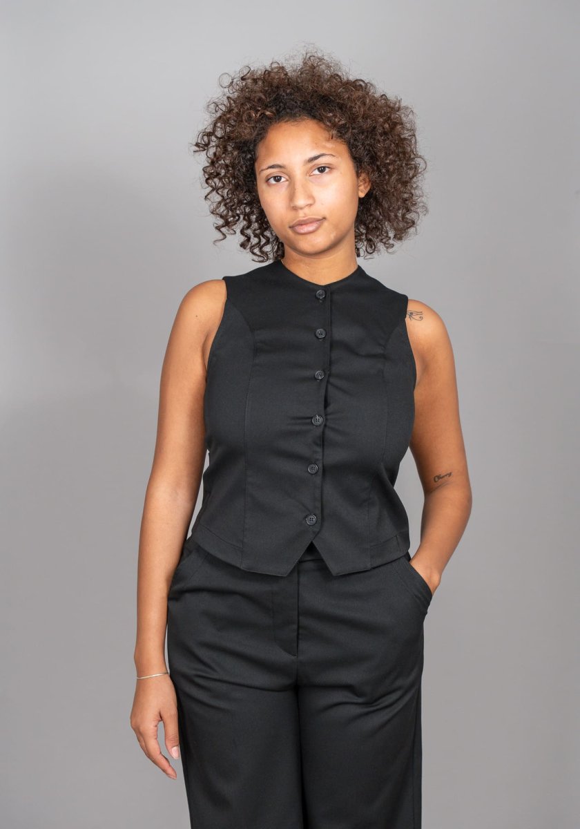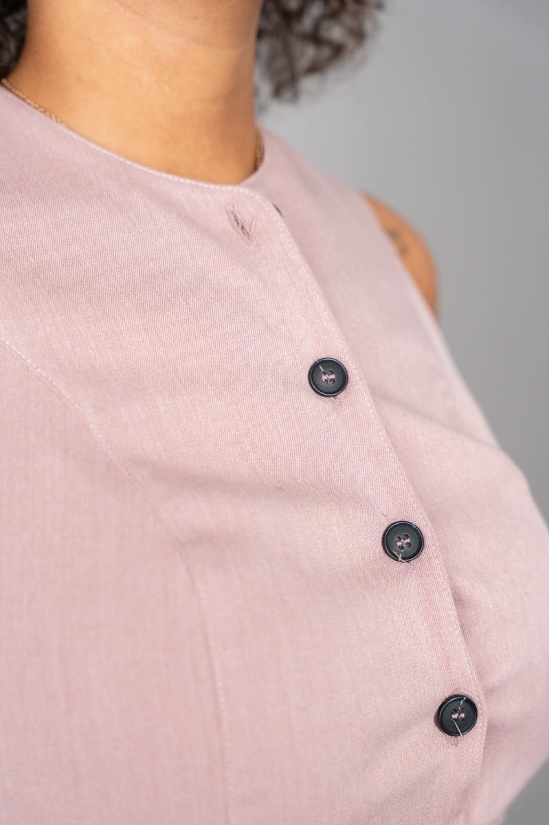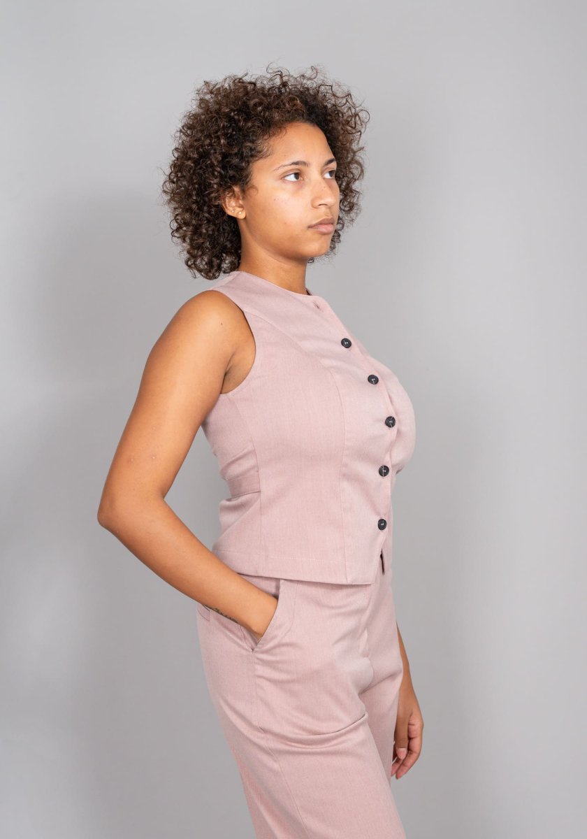 Equilibrio perfetto tra struttura e femminilità, il Corsetto Otto reinterpreta con eleganza moderna il classico gilet sartoriale. La sua linea slim scolpisce delicatamente la figura, valorizzando il punto vita grazie al cordino regolabile sul retro, che permette di adattare la vestibilità con naturalezza.