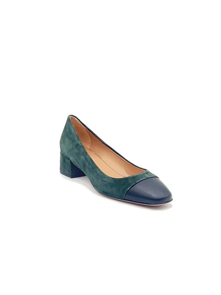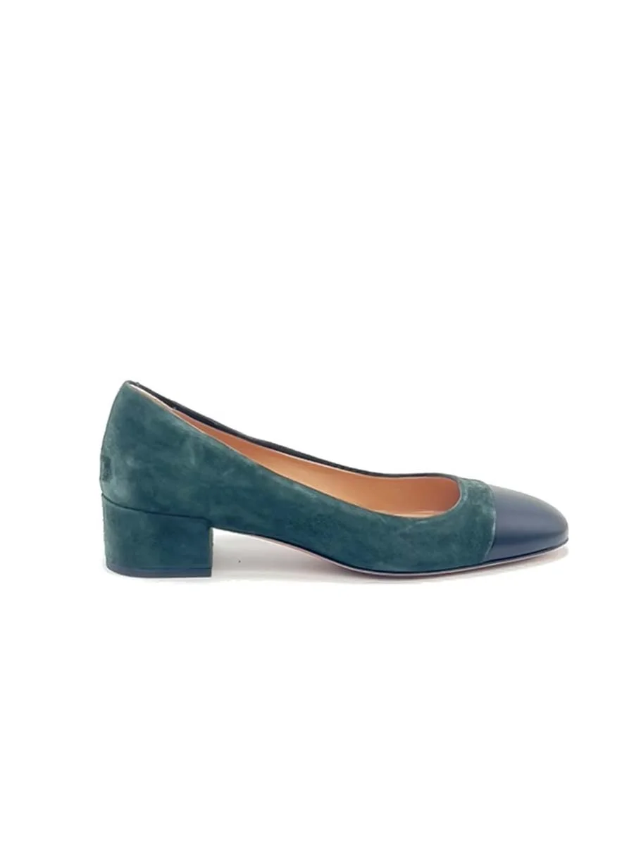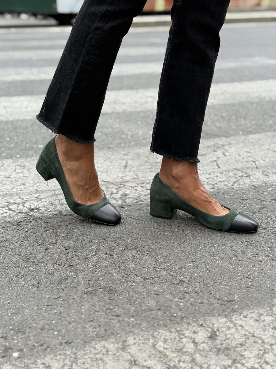 Si chiama “Costanza” il nuovo Decollete di questa stagione, dalla forma a mandorla realizzato in morbido camoscio verde e punta a contrasto in nappa nera, con la lavorazione a sacchetto che consente alla scarpa oltre che la leggerezza la massima flessibilità e comodità. Tacco cm 4.