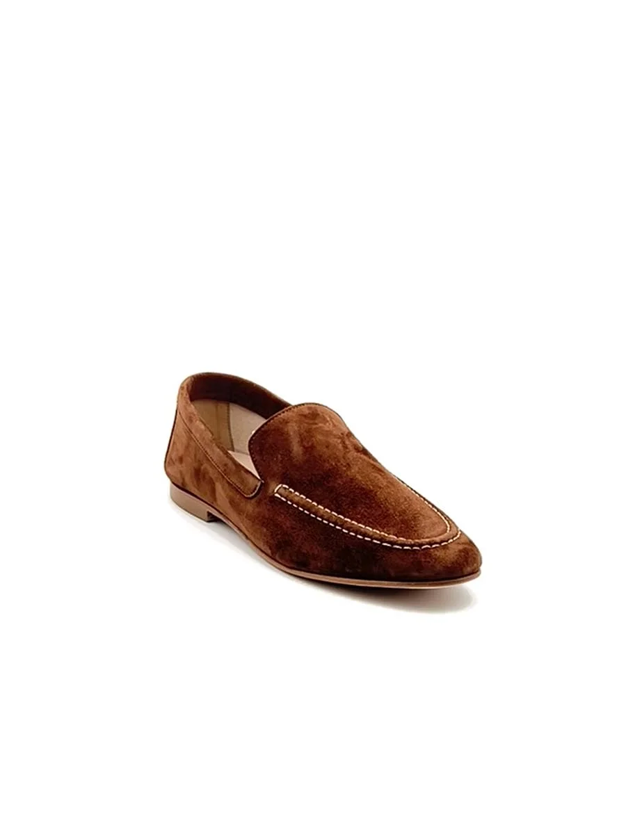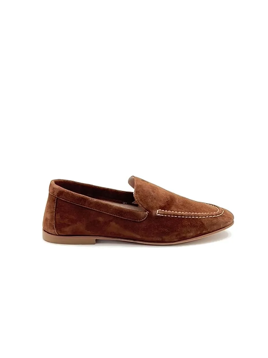 Si chiama “Eleonora” il nuovo mocassino di questa stagione, dalla forma a mandorla, realizzato in morbido camoscio tabacco. Tacco largo cm 1. Il fondo è in cuoio.
