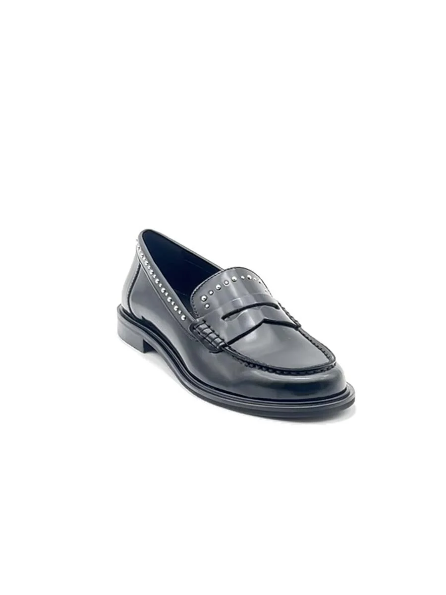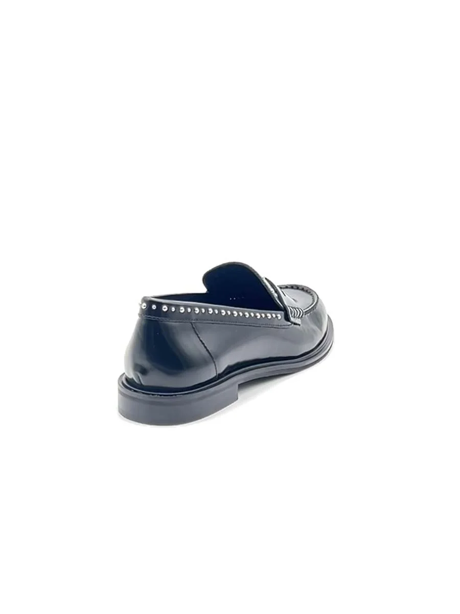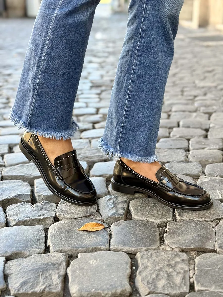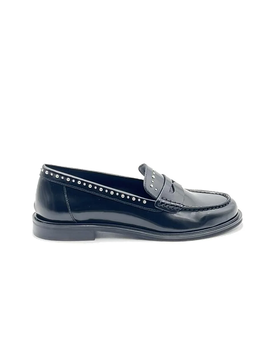 “Elsa” Mocassino in Pelle Abrasivata Nera Borchiata