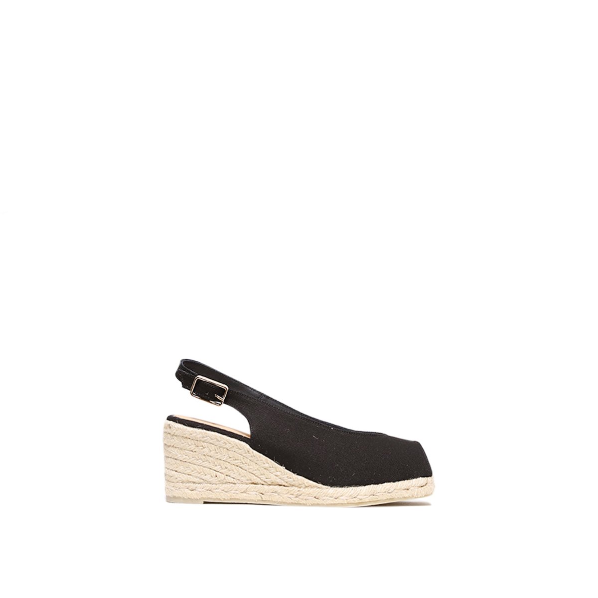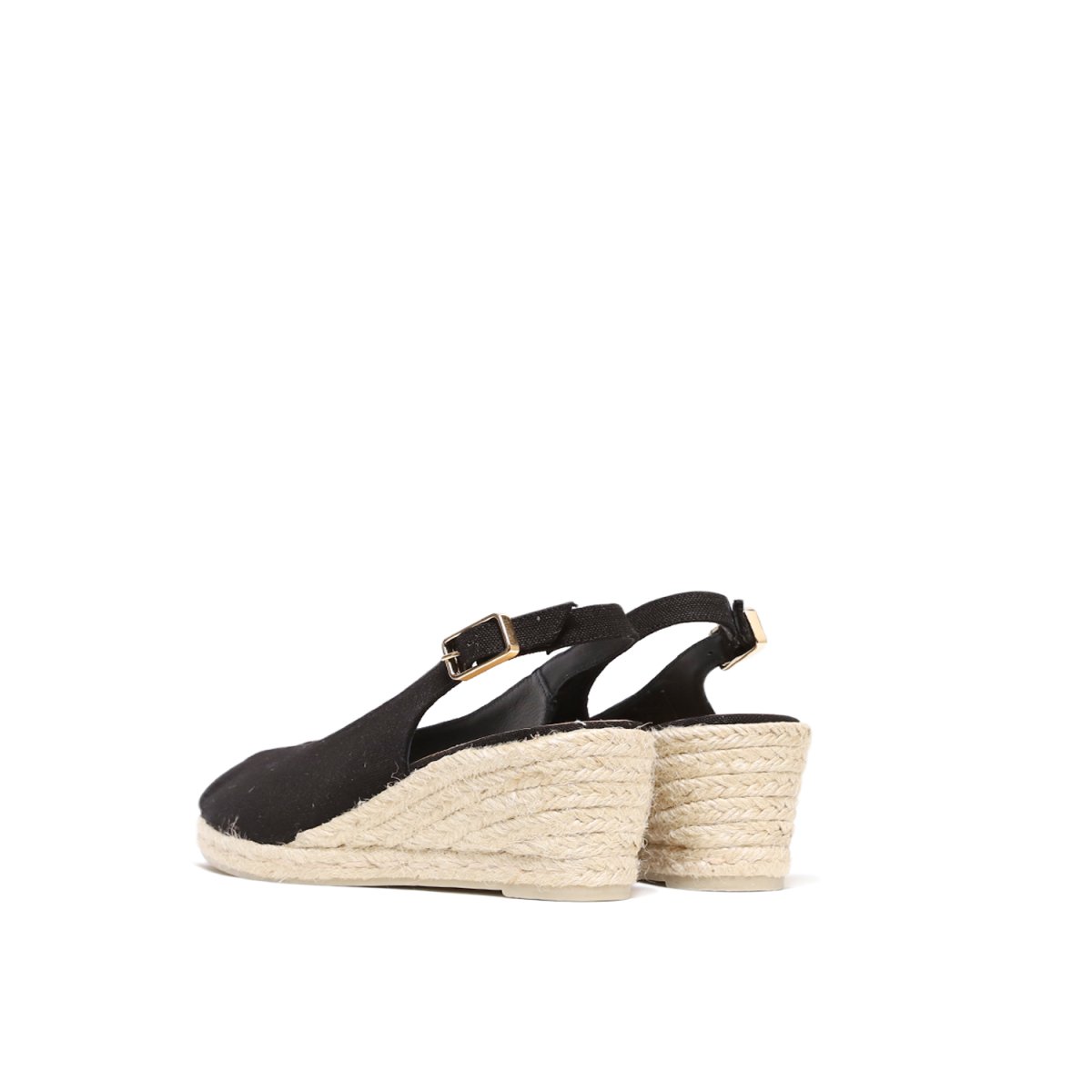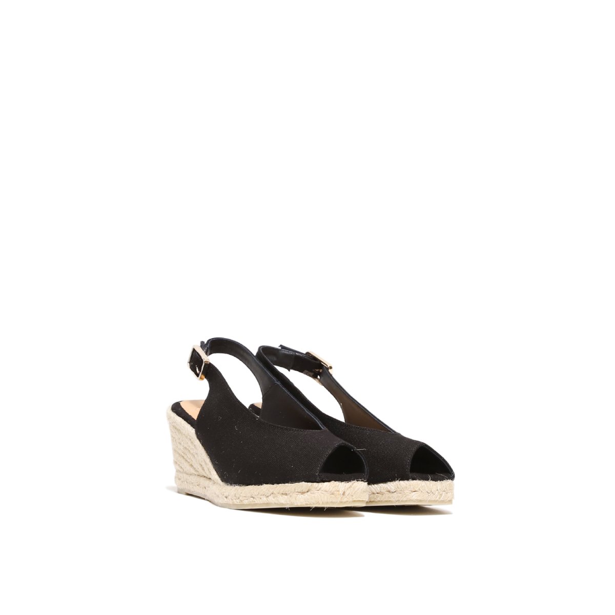 Espadrilla con zeppa a punta aperta in tela di cotone nero