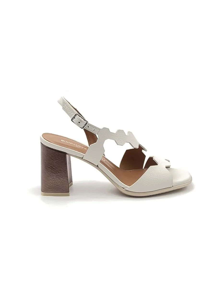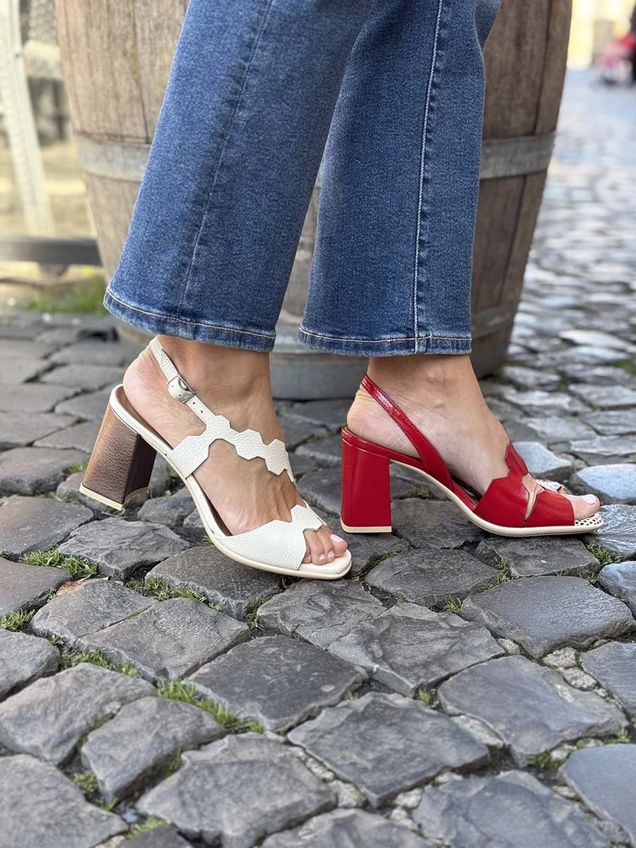 Si chiama “Flex” il nuovo sandalo di “Gianmarco Sorelli”, dalla forma a tonda realizzato in morbida nappa burro con tacco a contrasto in pelle laminata bronzo. Tacco cm 7, il fondo è in gomma.