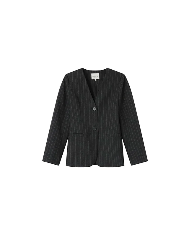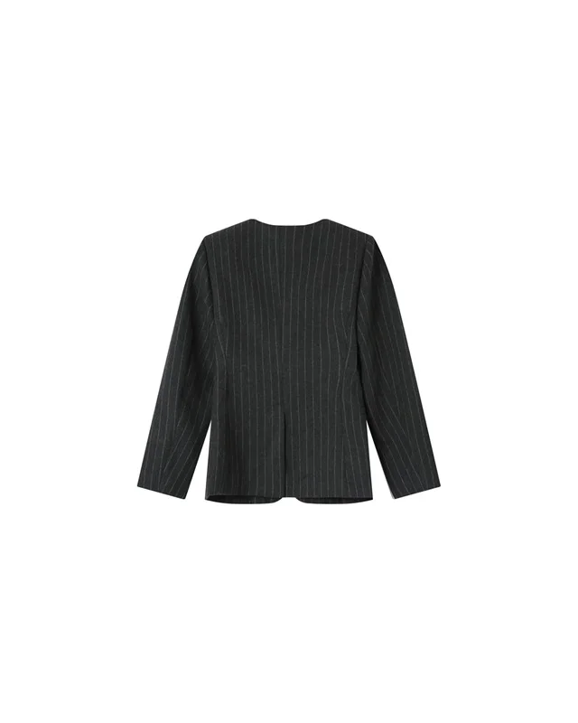 NUOVI ARRIVI GRACE AND MILA GIACCHINA SENZA COLLO GESSATA SHAIN Giacchina senza collo in misto lana con motivo gessato Shain by Grace and Mila.