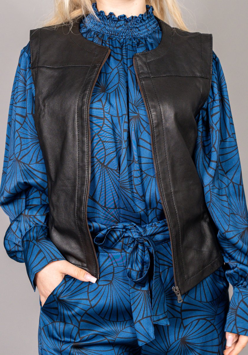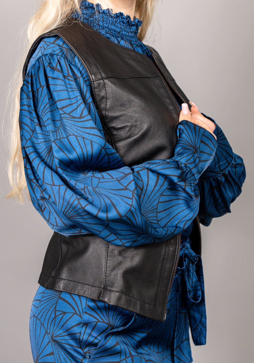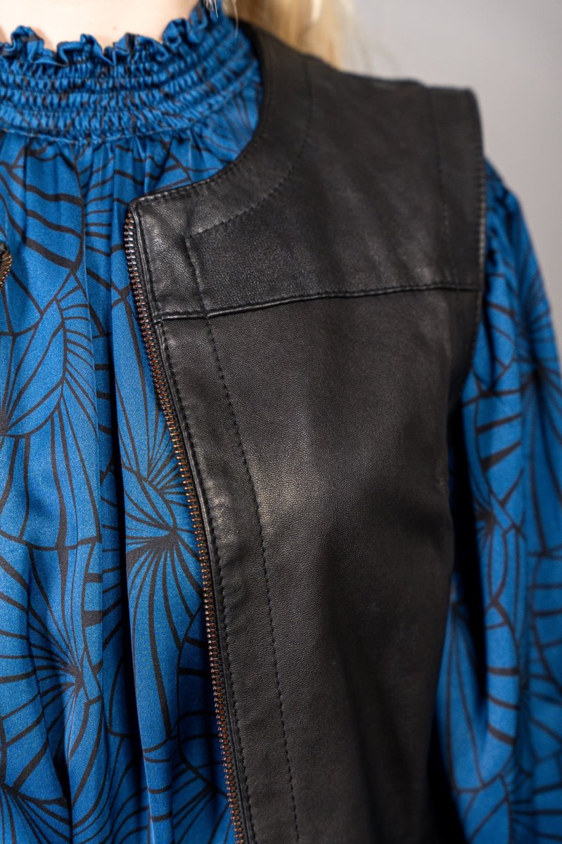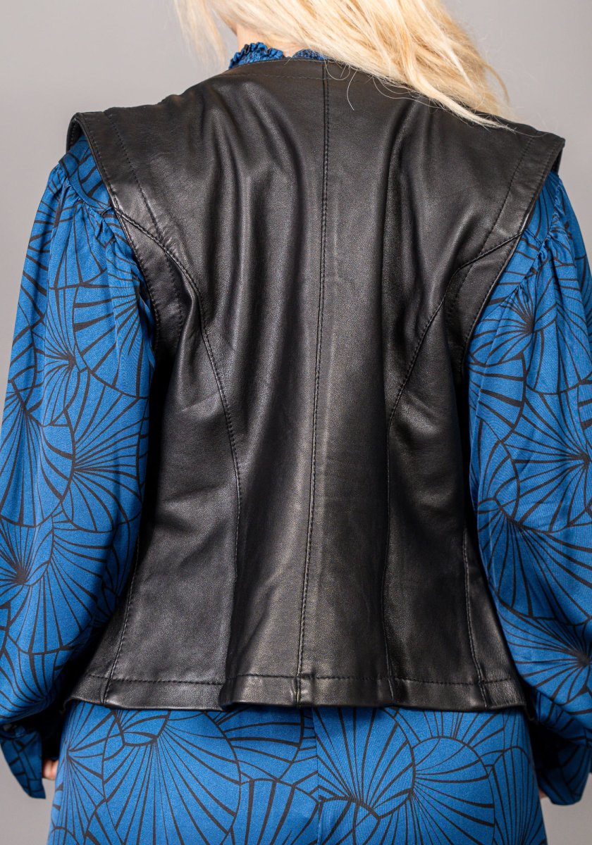 Questo gilet è realizzato in pregiata pelle e presenta un design sciancrato che si adatta perfettamente alla tua silhouette.