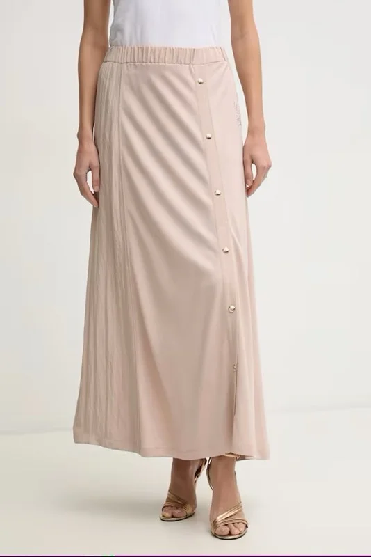Nuova Collezione Liu Jo TA5223 Gonna lunga in jersey con bottoni oro, e inseri in tessuto, comoda con elastico in vita, Capo versatile per molteplici outfit, sia casual che ufficio e elegante.