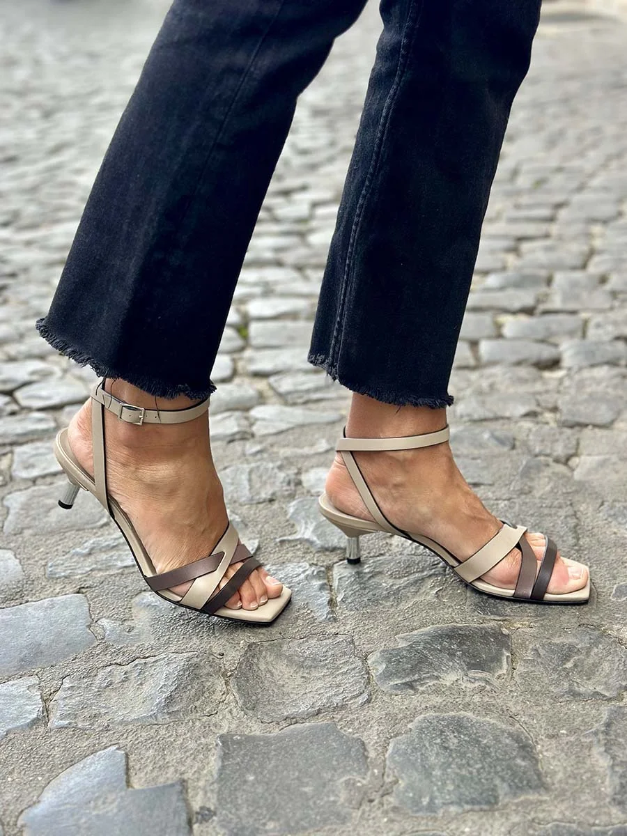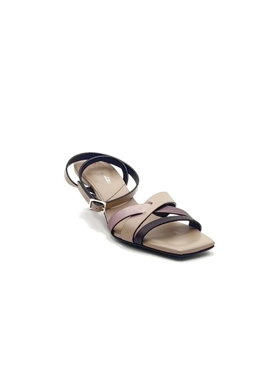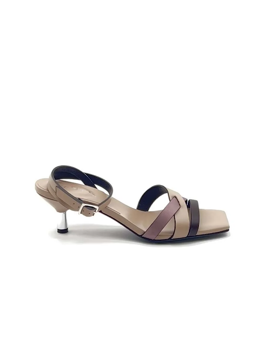 Si chiama “Ibiza” il nuovo sandalo di questa stagione. Realizzato interamente a mano, dalla forma squadrata con tomaia in pelle laminata e nappa testa di moro effetto raso, sottopiede e sottile cinturino regolabile in morbida nappa grigio perla. Il tacco a rocchetto cm 5 completa il design con una nota di eleganza, il fondo è in cuoio.