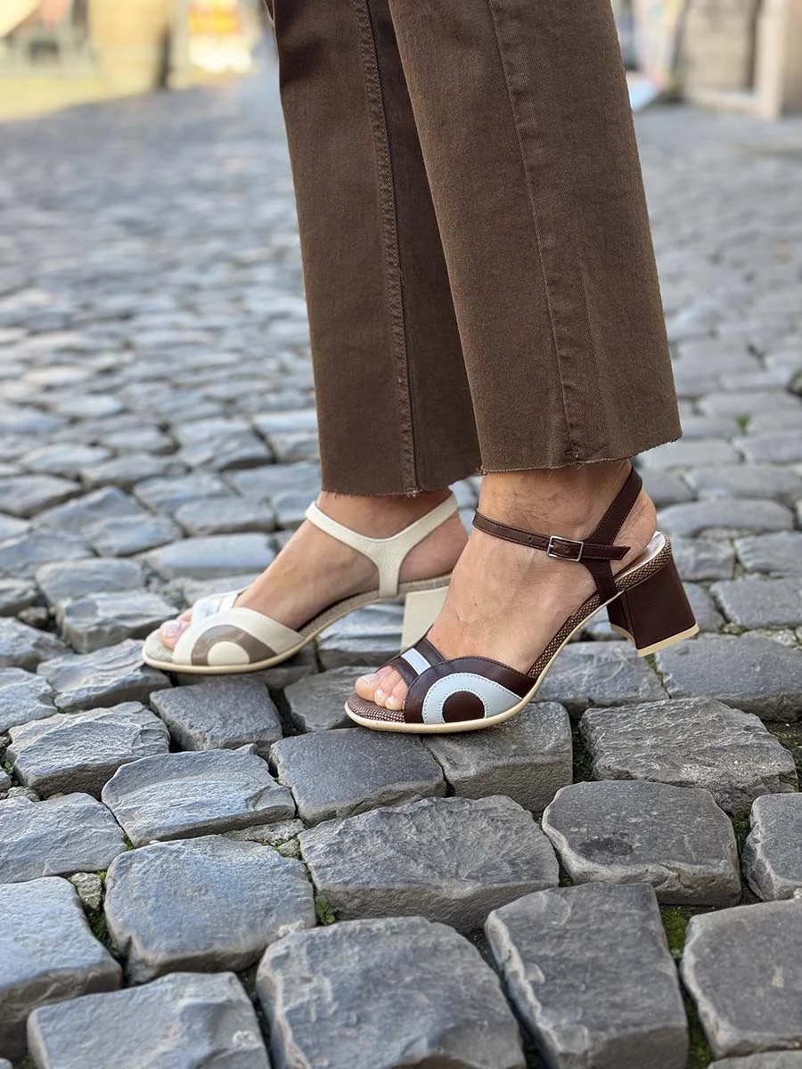 Si chiama “Ida” il nuovo sandalo di “Gianmarco Sorelli”, dalla forma a tonda realizzato in morbida nappa burro con profili a contrasto in vernice fango e sottopiede in rafia beige. Tacco cm 5, il fondo è in gomma.