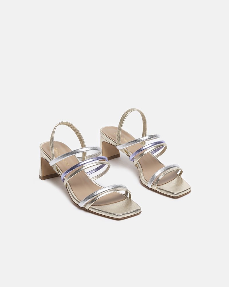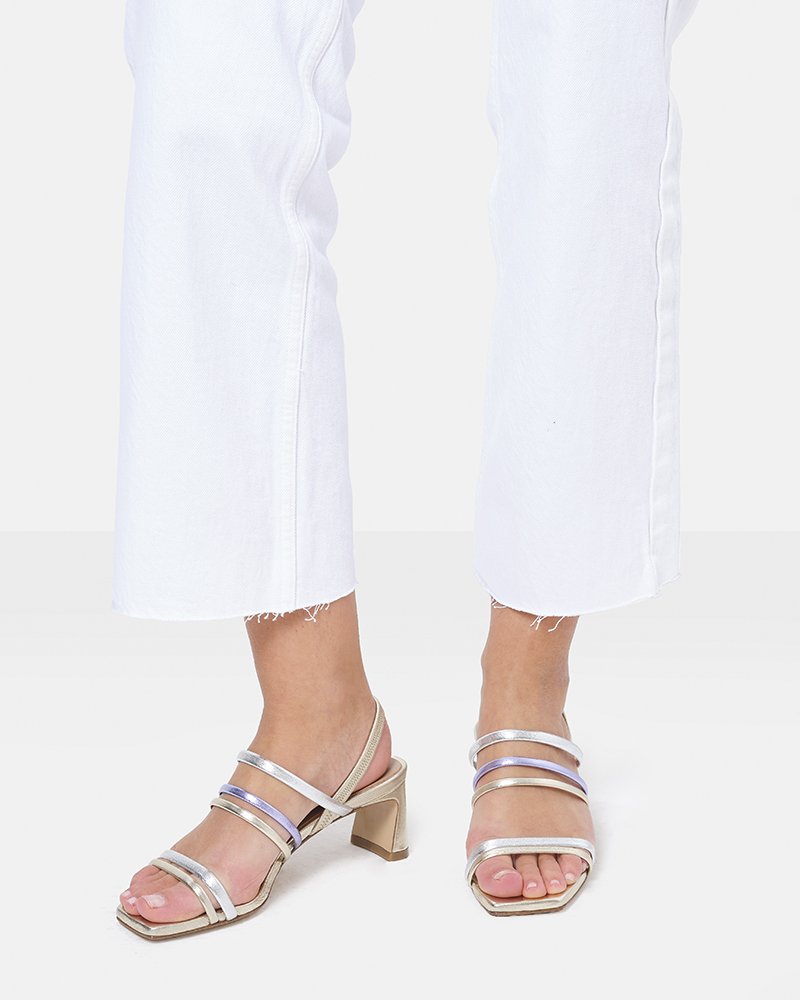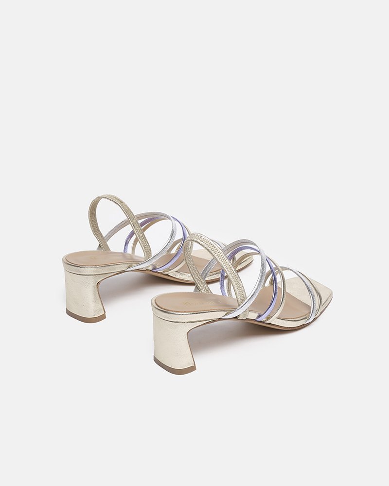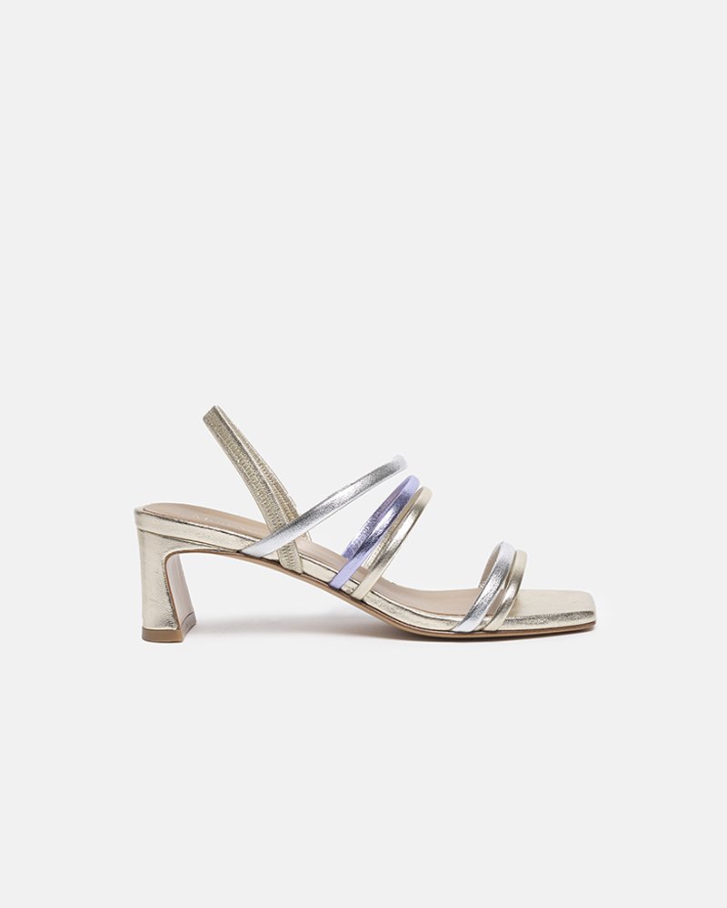 - Sandalo in pelle laminata con cinturino tallone elasticizzato