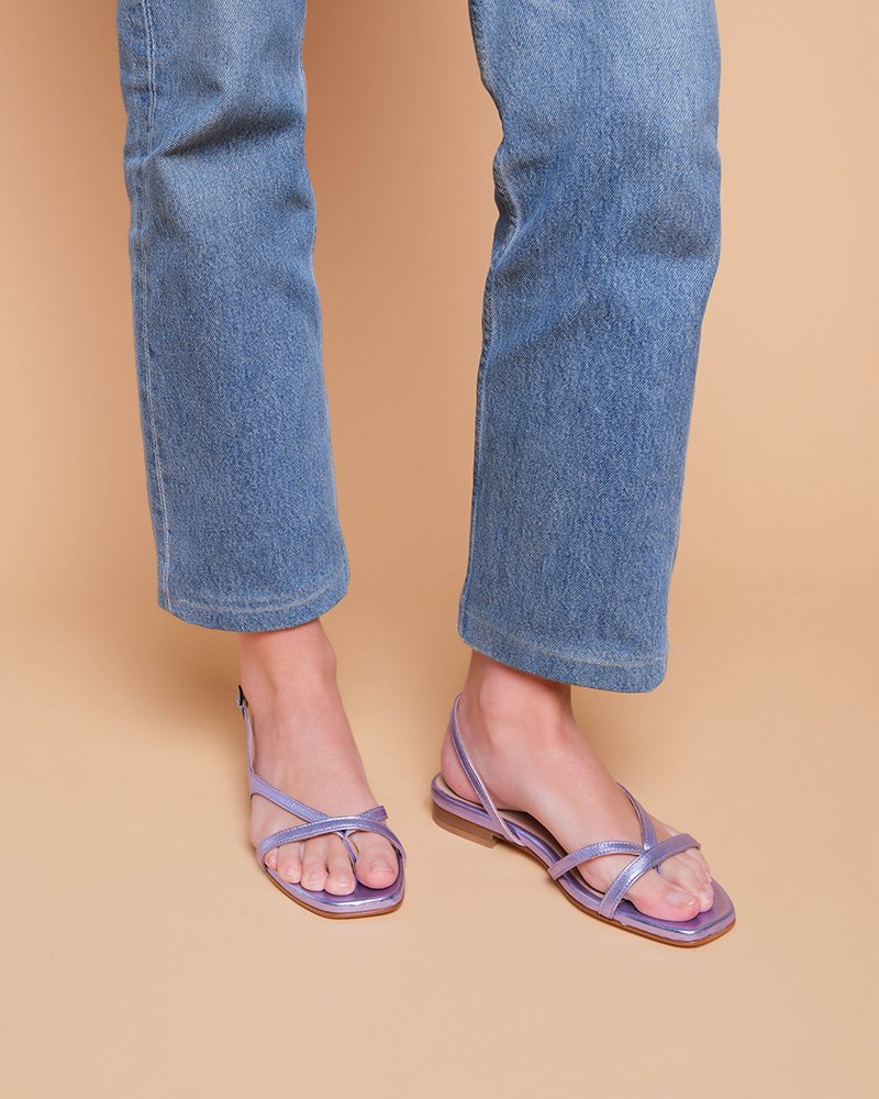 Sandalo infradito in pelle laminata