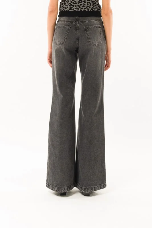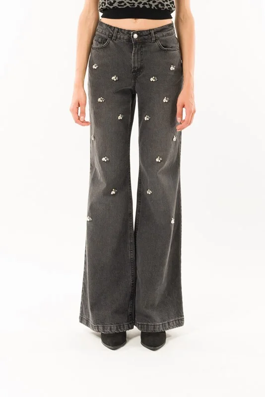 NUOVI ARRIVI A/I 2024 KONTATTO JEANS PLARE FIORI CRISTALLI GZ900C Jeans a zampa Kontatto con vita alta e fiori in cristalli applicati.